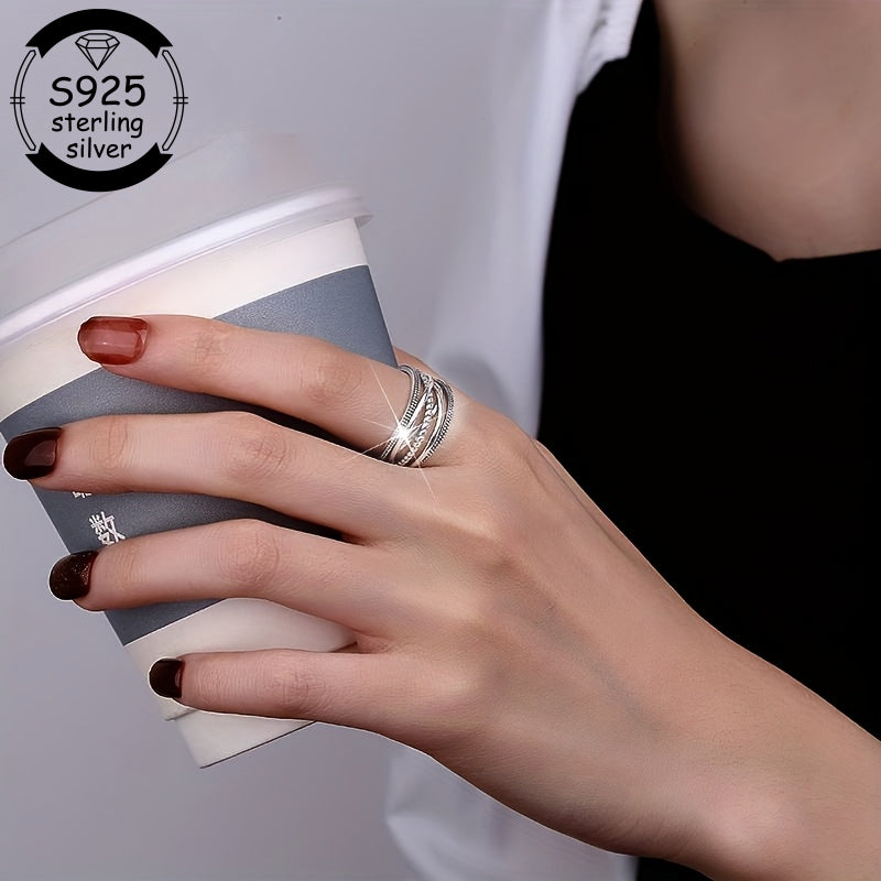 1pc 925 Sterling Silvery Adjustable Ring, Simple Design Perfect for Summer Beach Weddings, Casual Attire, Weddings, Beach Vacations, Ramadan, and Mother's Day Gifts