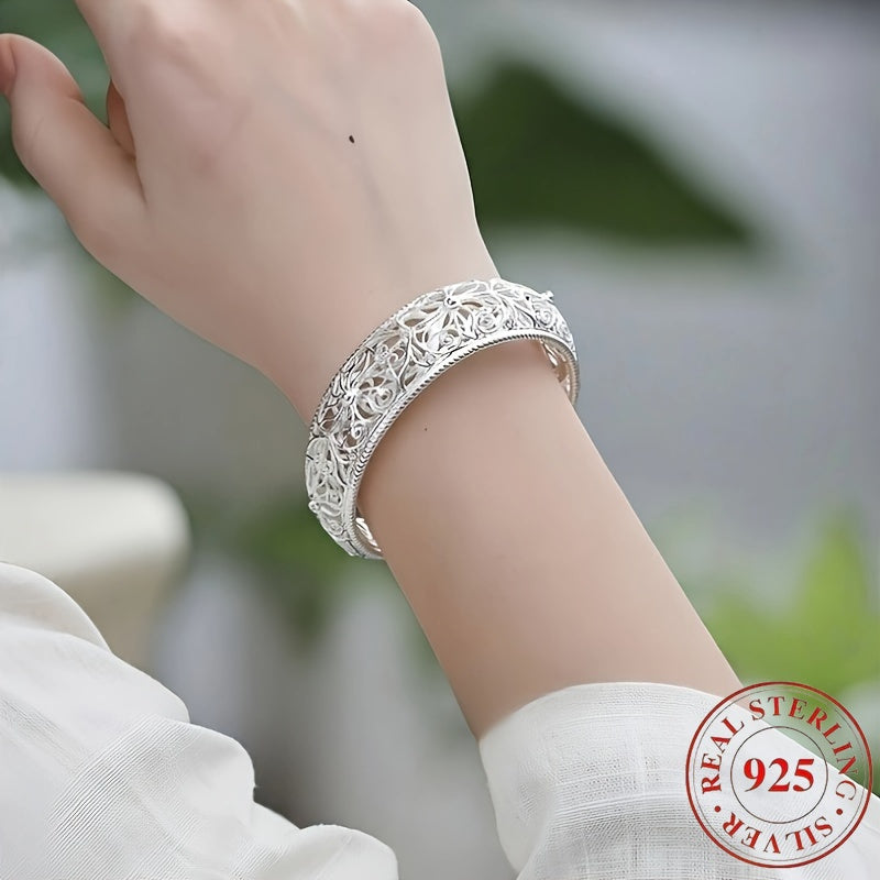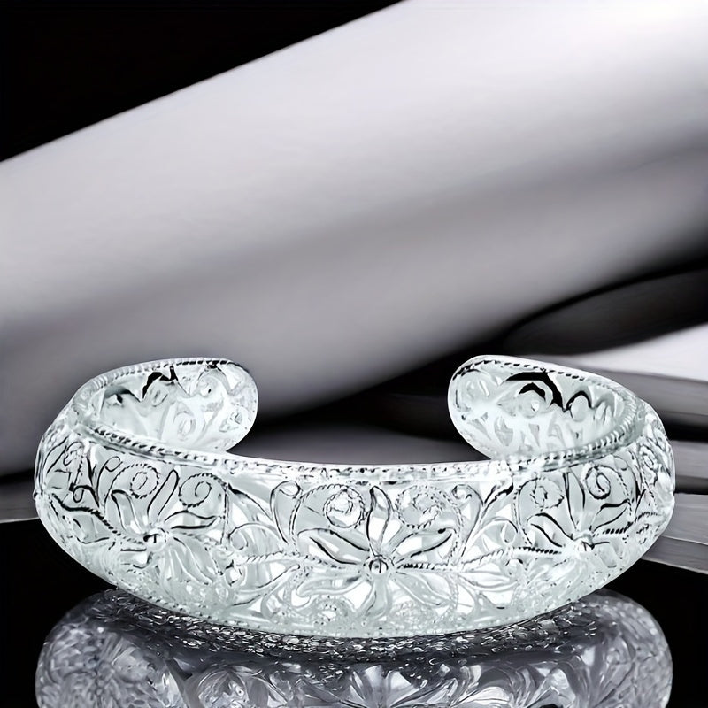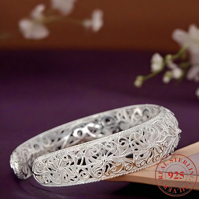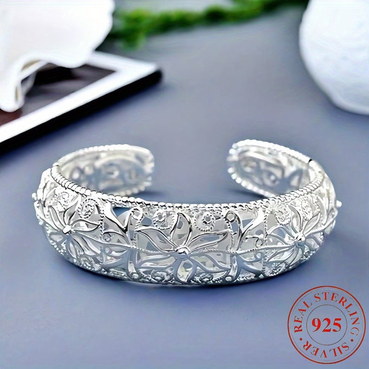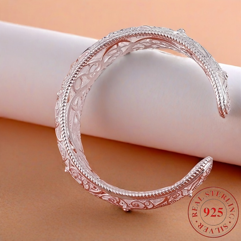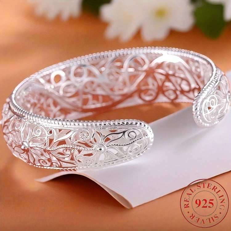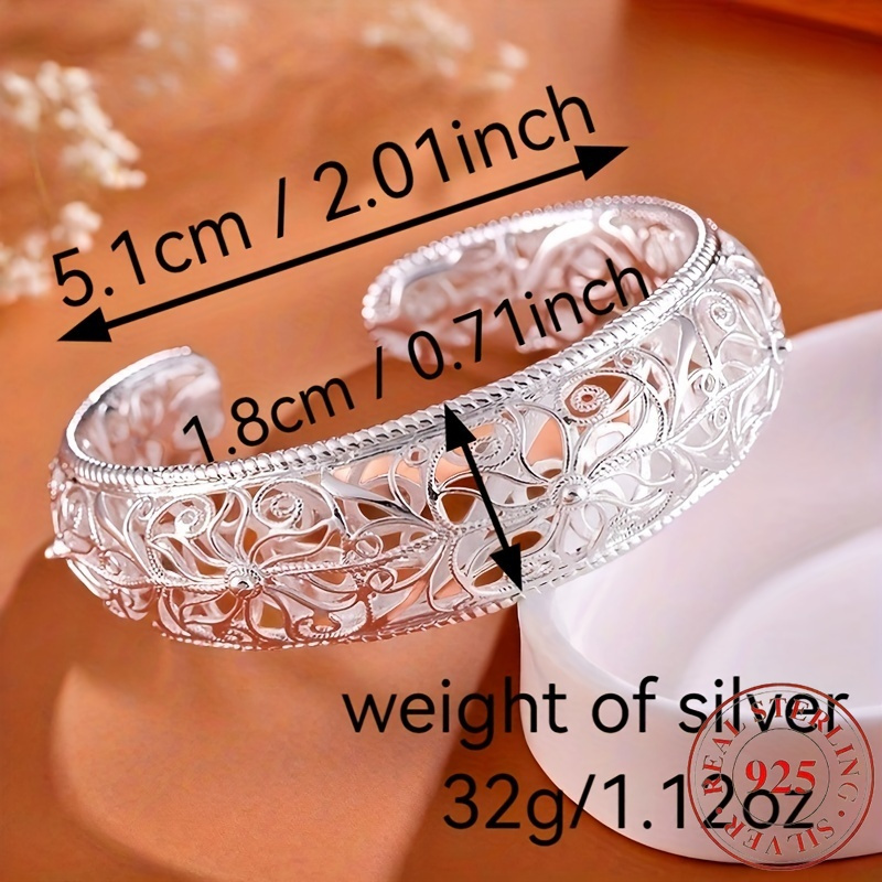 925 sterling Silvery open mouth bracelet, low allergenicity and exquisite floral design, is the perfect gift for her, perfect for parties and daily wear