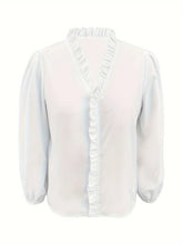 Women's Elegant V Neck Ruffle Long Sleeve Shirt, Elastic Cuffs, Casual Comfortable Top for Spring & Fall, Daily Wear