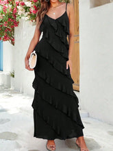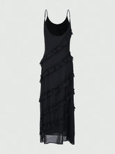 2025 Newest Women's Black Chiffon Sexy Open Back & V-Neck Spaghetti Straps, Ruffled Maxi Bodycon Dress New Year Women's Dress