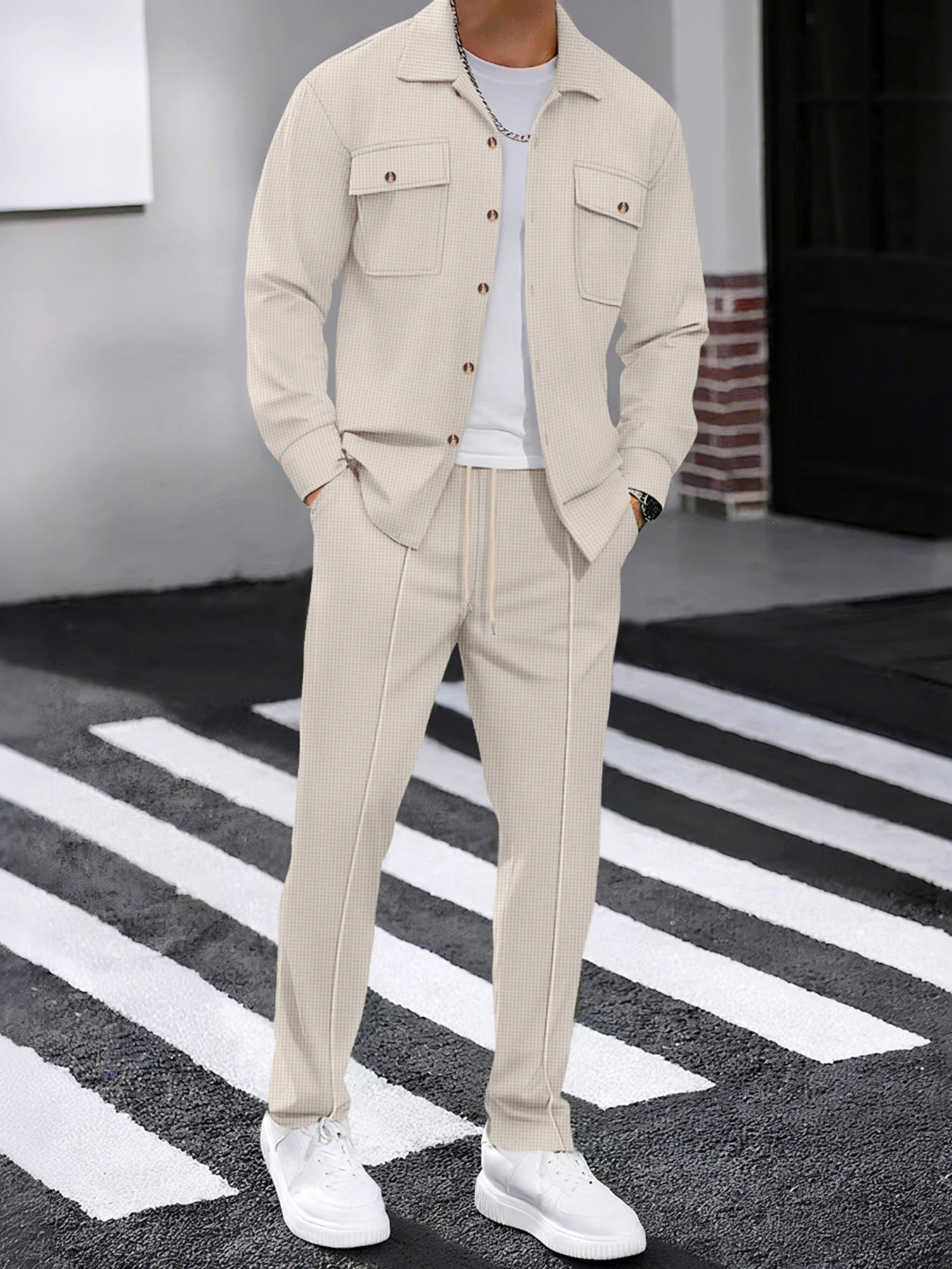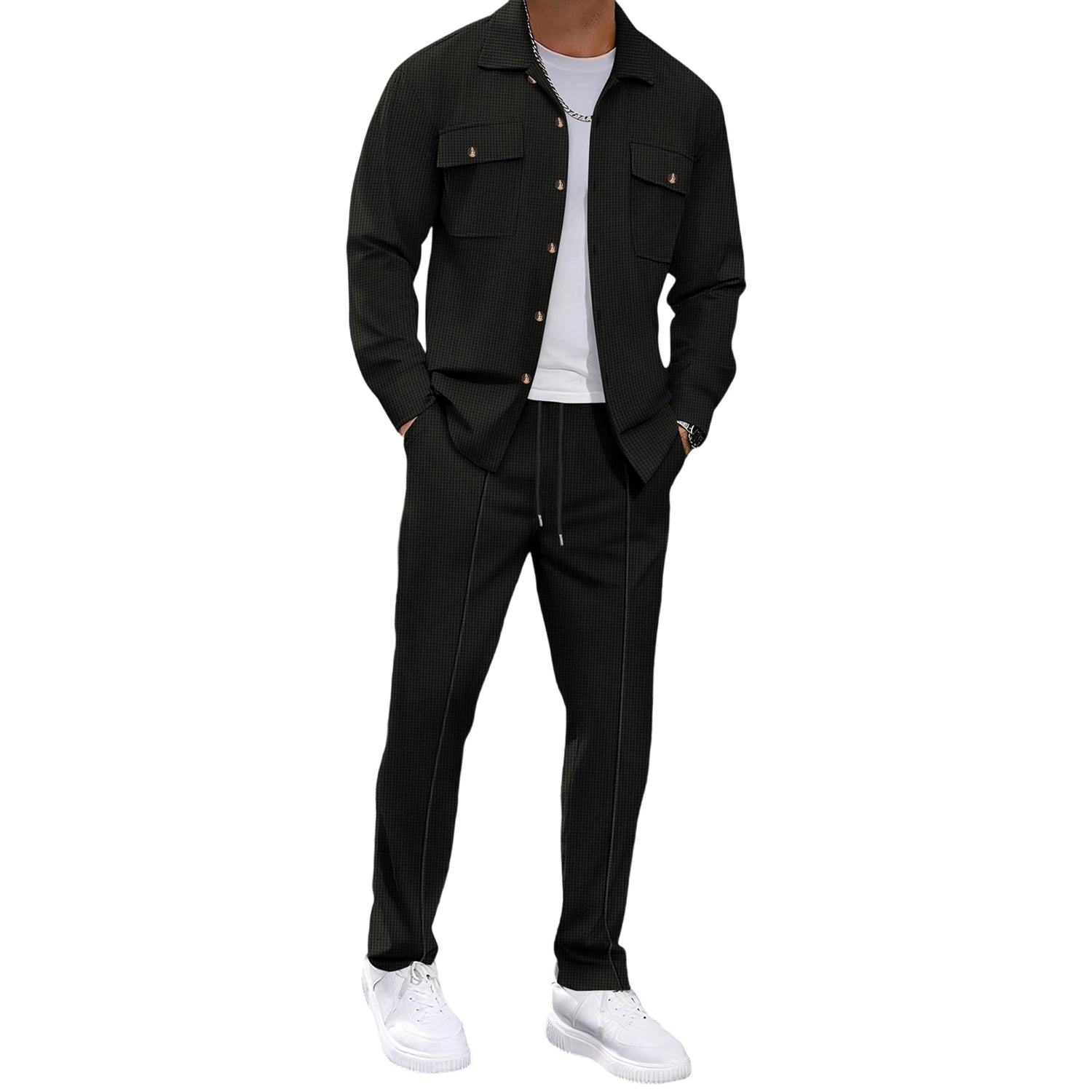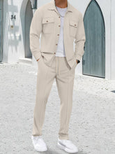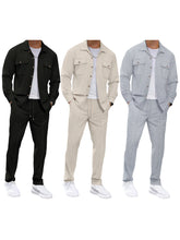 Men 2-piece Outfit, Long Sleeve Button Closure Jacket with Pants Fall Casual Outfit