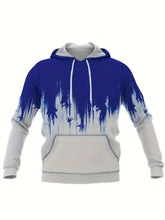 Men'S Plus Size Hoodie and Pants Set - Stylish Blue & White Geometric Print, Regular Fit, All-Over Design, Slight Stretch Fabric, Perfect for Casual Wear, PLUS SIZE