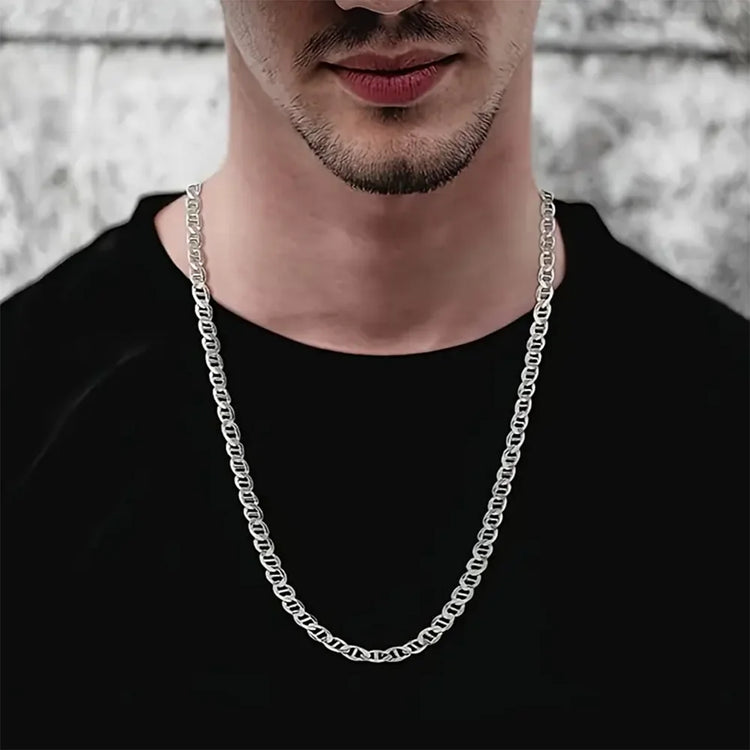 925 Sterling Silver chain 3.5MM Solid Flat Mariner Link Chain Necklace- Silver Necklace Chain, Men and Women