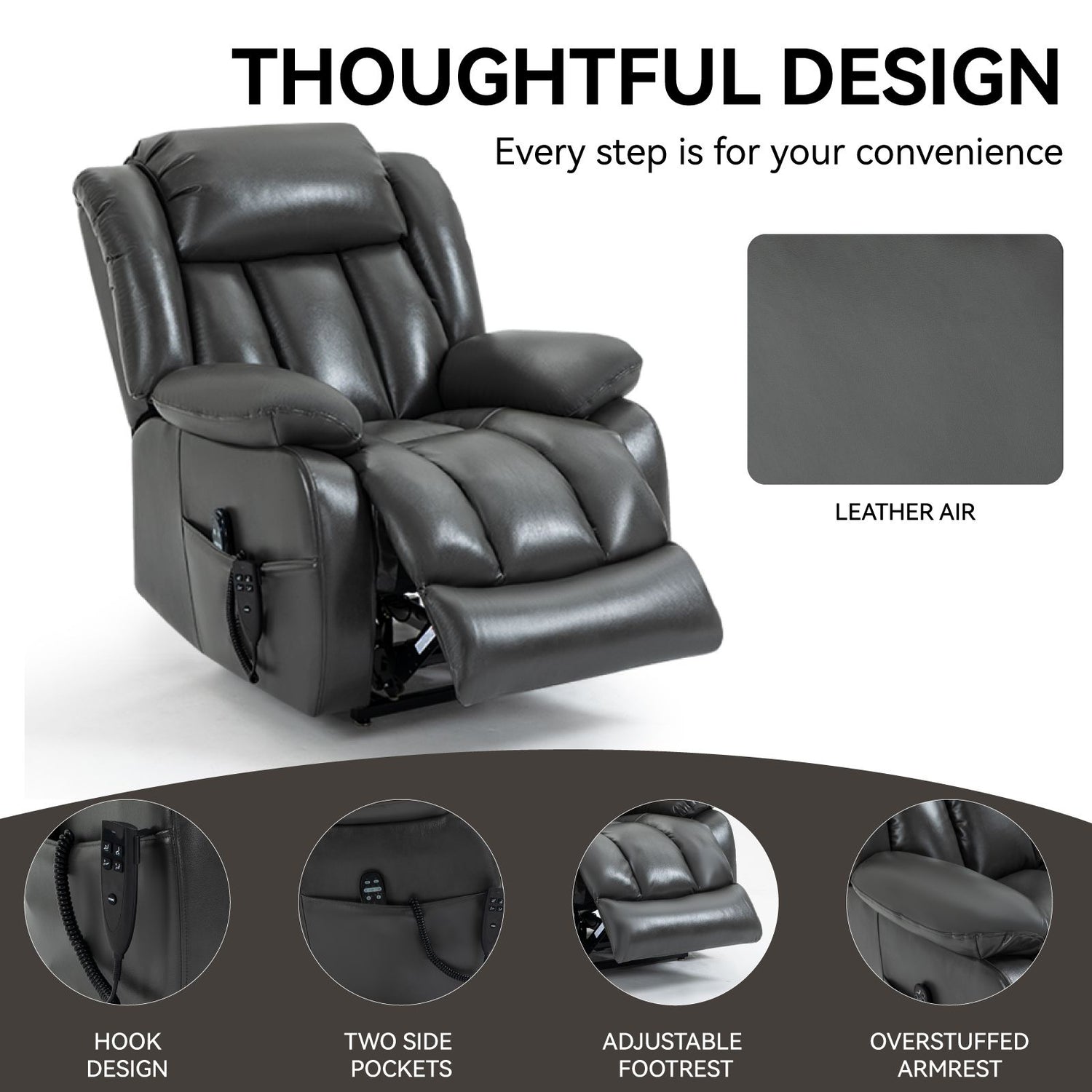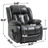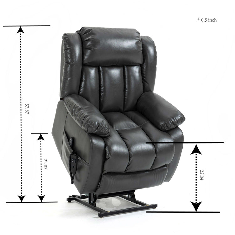Dual Motor Infinite Position Up to 350 LBS Electric Medium size Leatheraire Grey Power Lift Recliner Chair with 8-Point Vibration Massage and Lumbar Heating