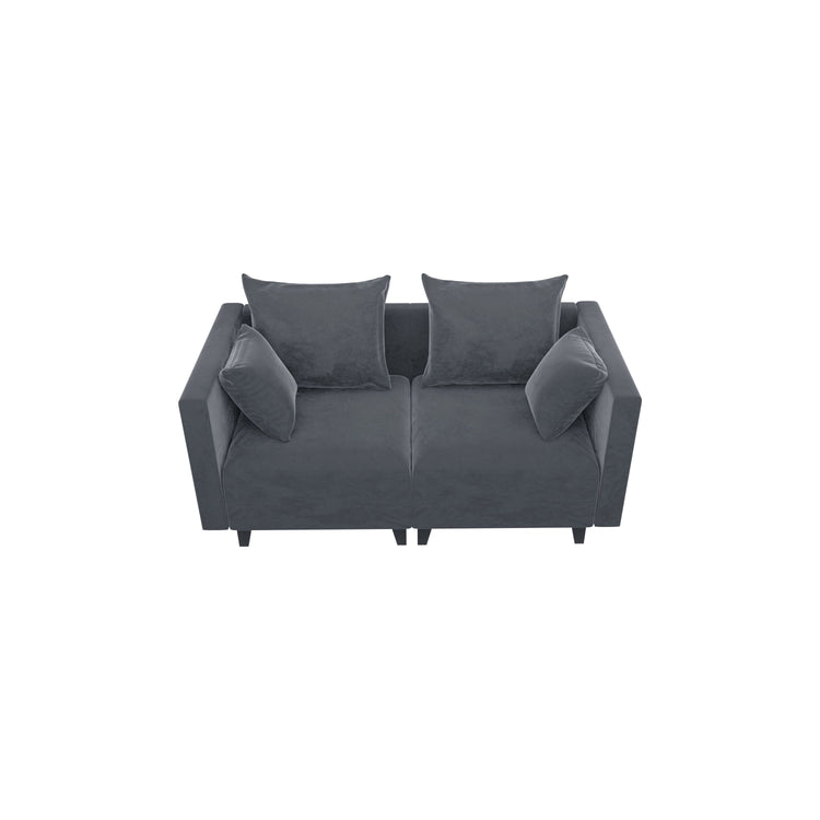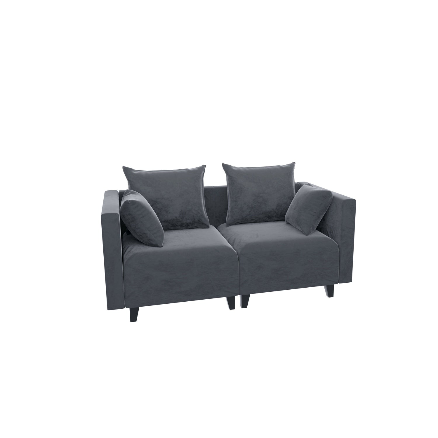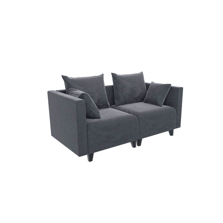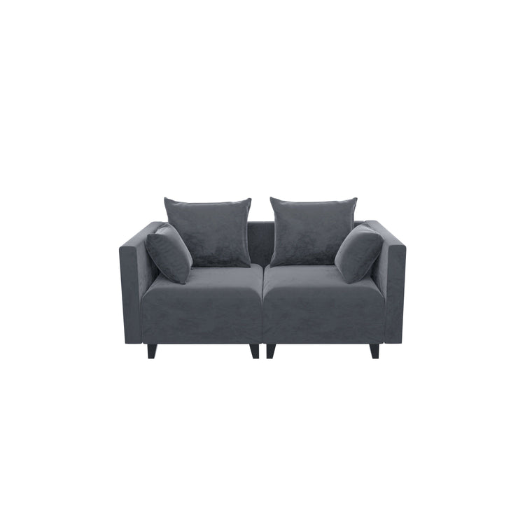 Sectional Sofa, Velvet Square Arm Sofa for bedroom, livingroom, (grey+blue)