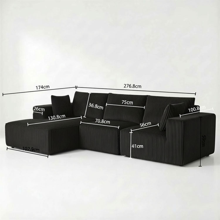 Modular Sectional Sofa, Cloud Sectional Couch with Deep Seat, Modern Modular L-Shape Sofa with Chaise,Upholstered Boneless Couches for Living Room (Corduroy, BLACK)