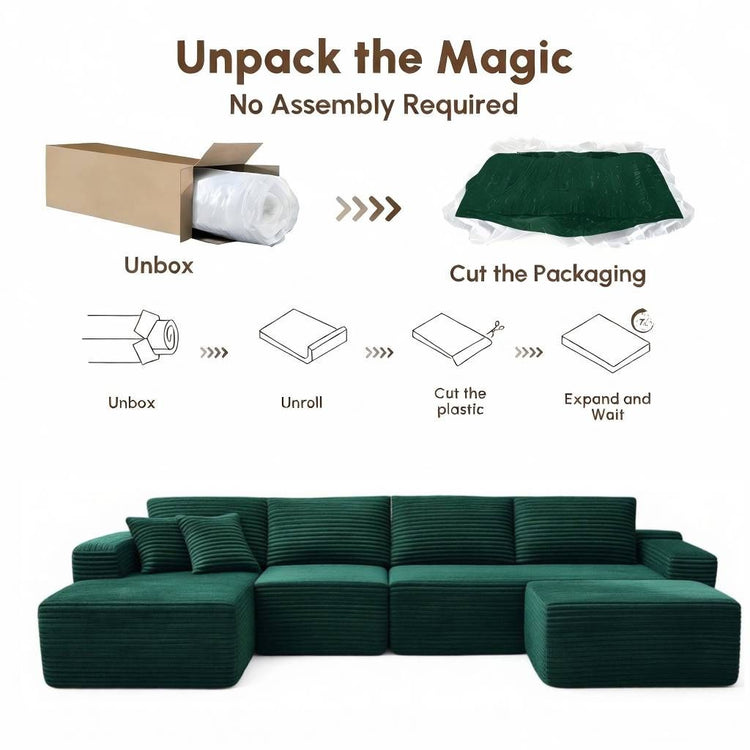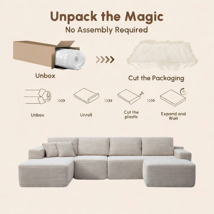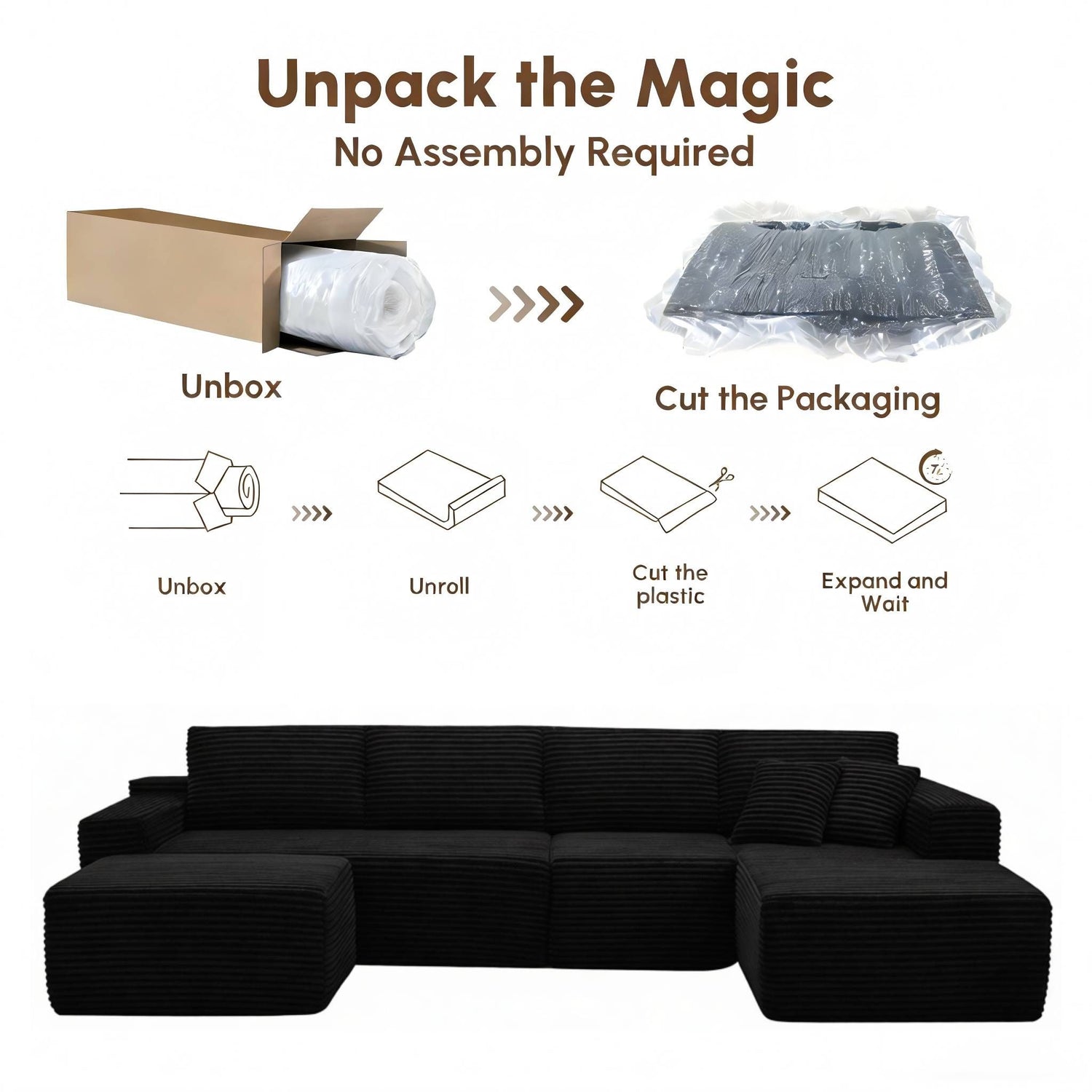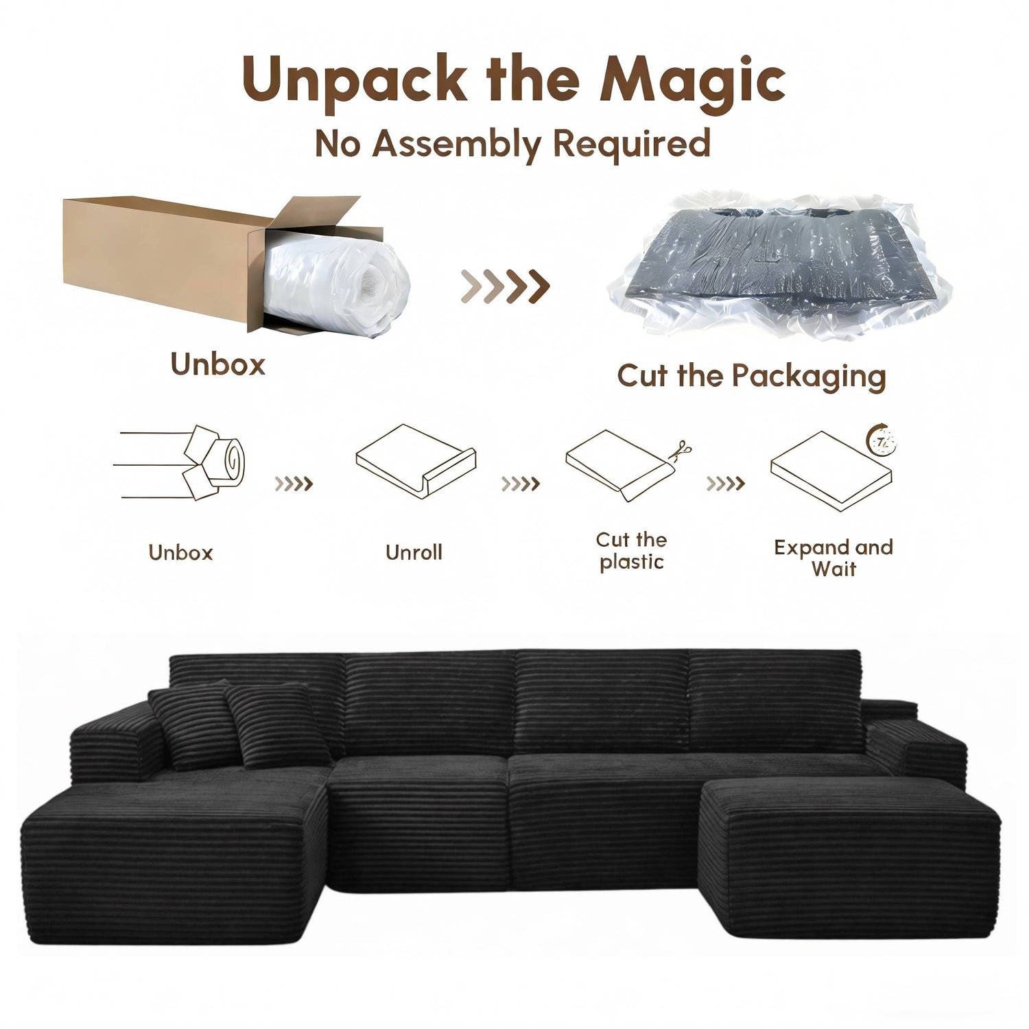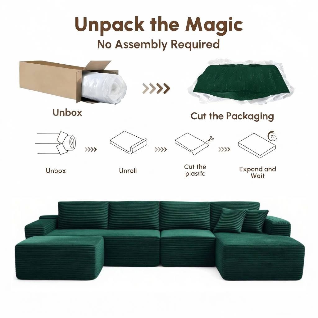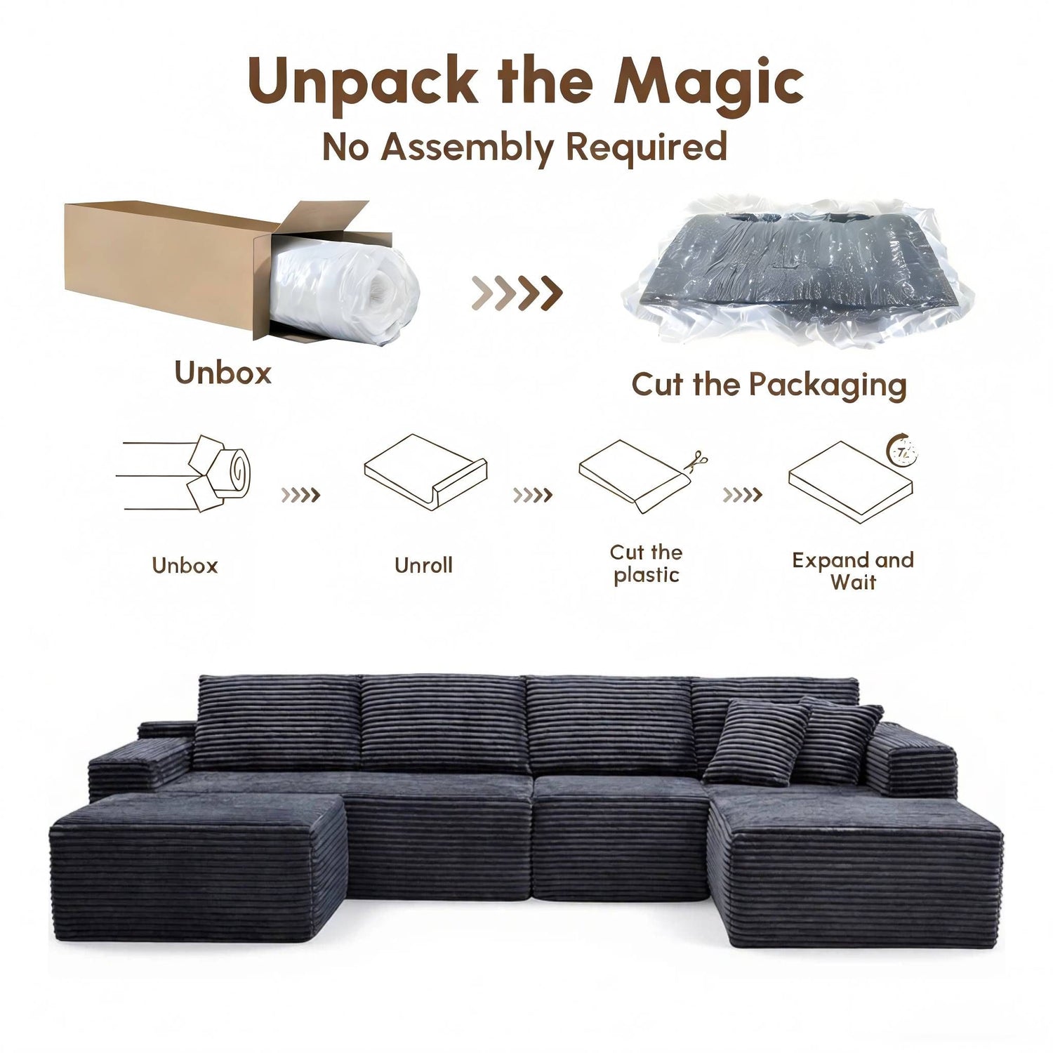 1.Expertly engineered with compression technology to ship in a compact, easy-to-handle box. Requires no assembly; simply unbox, position, and enjoy a fully-formed, large sofa in minutes.