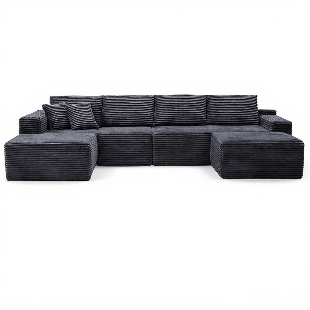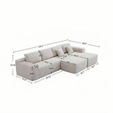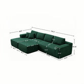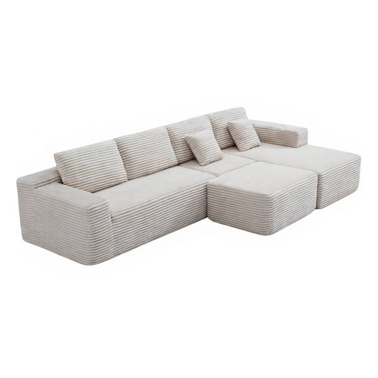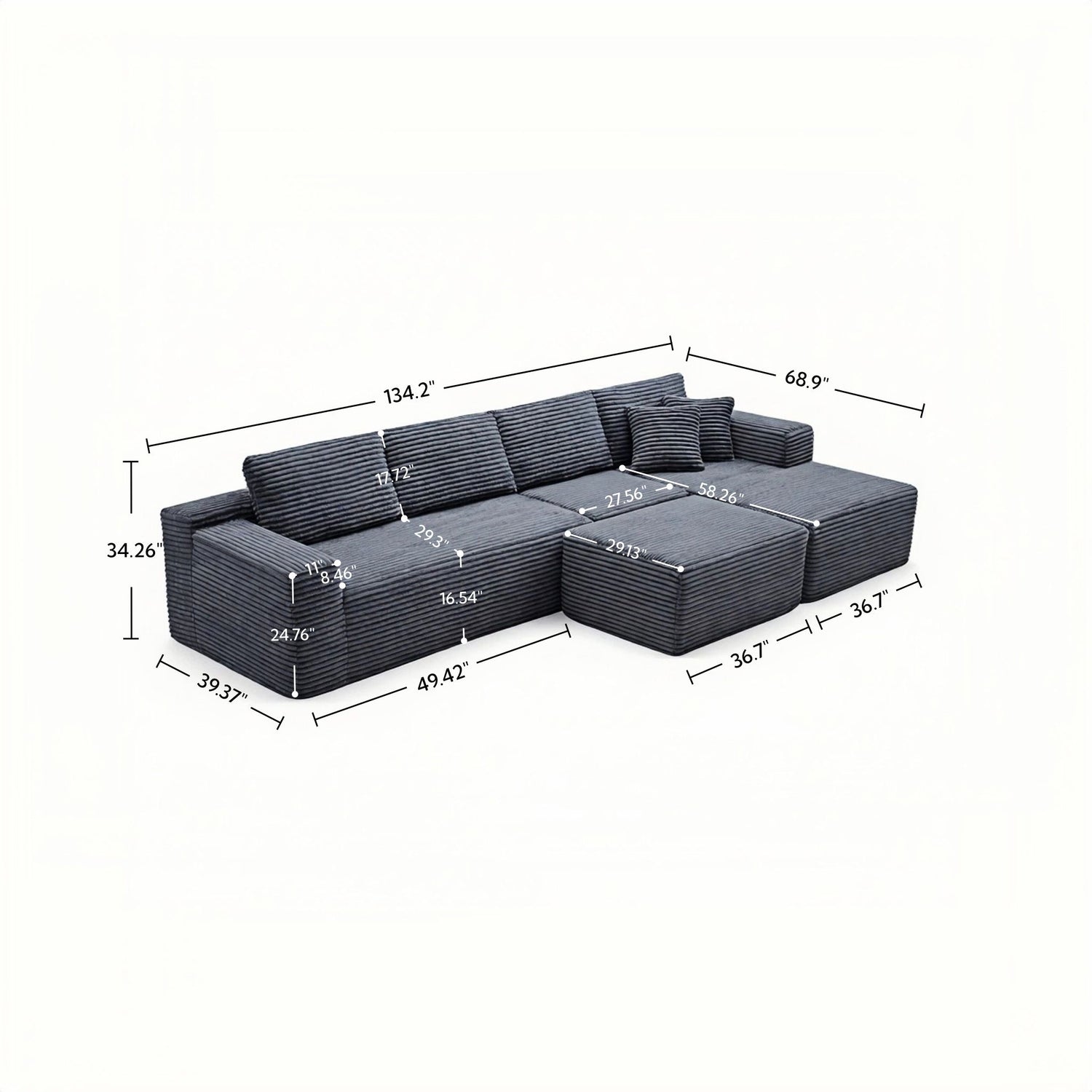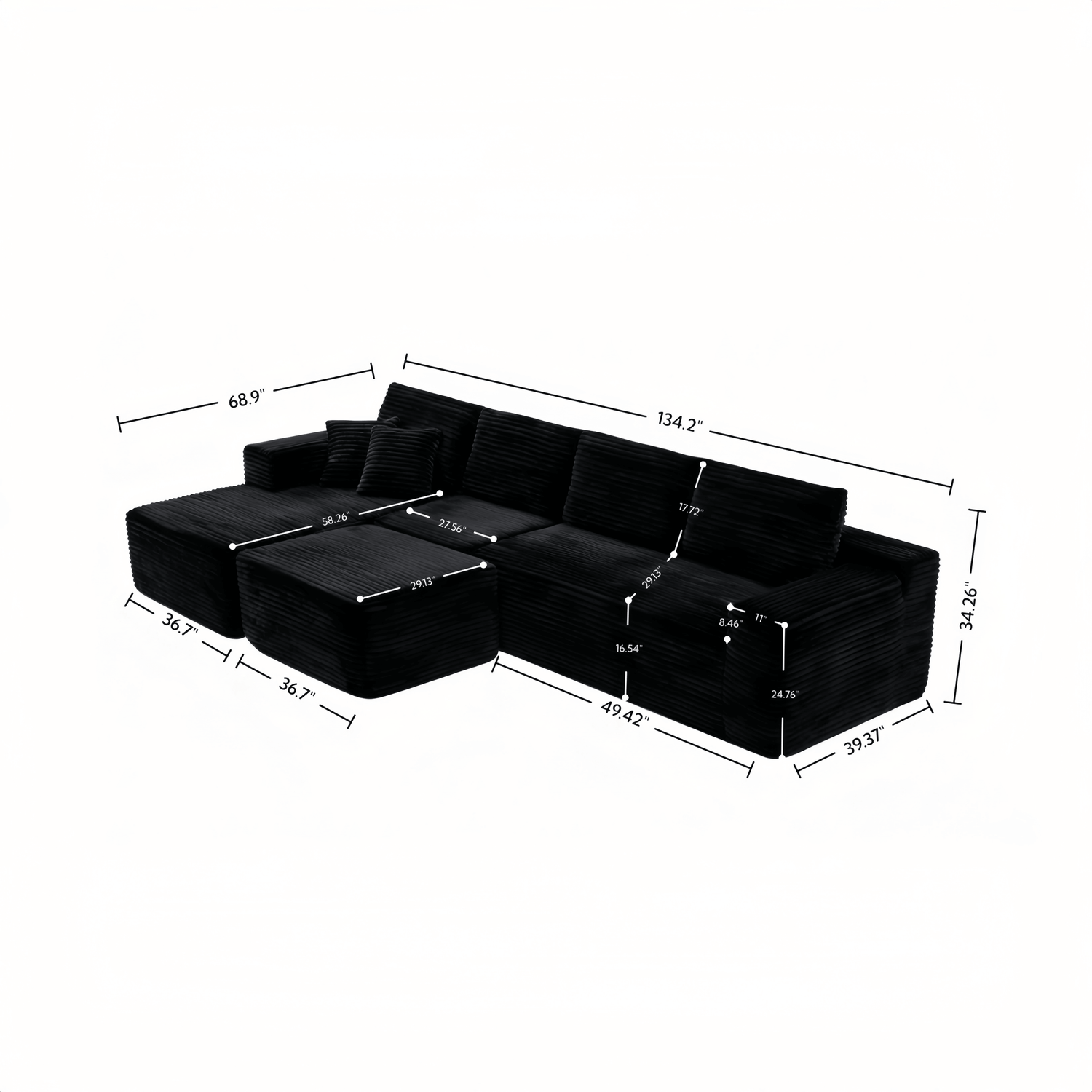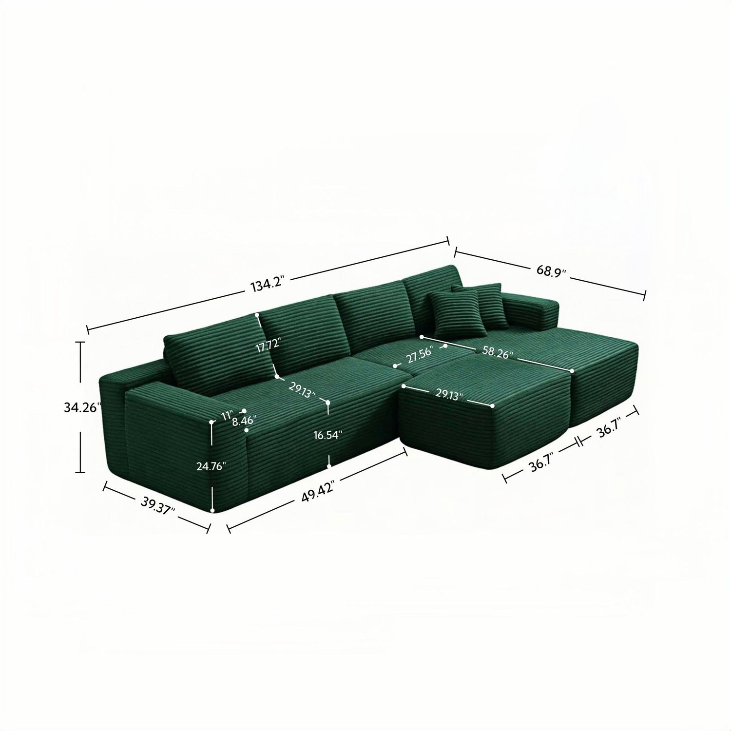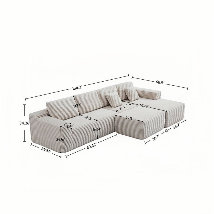 134" Modern Minimalist Modular Sectional Couch with Ottoman, Comfort L Shaped Sofa for Living Room, No Assembly Required