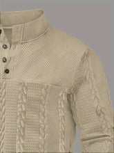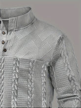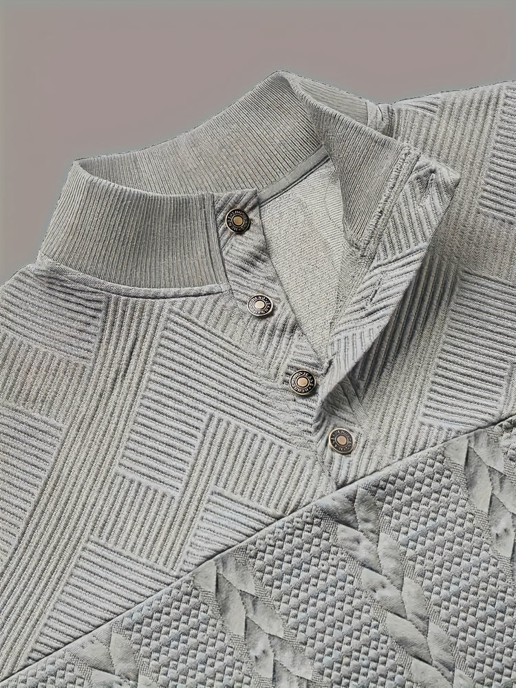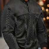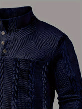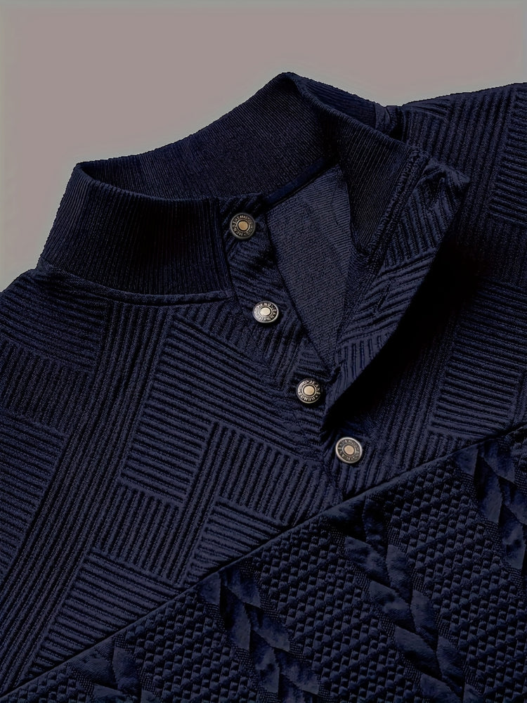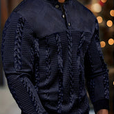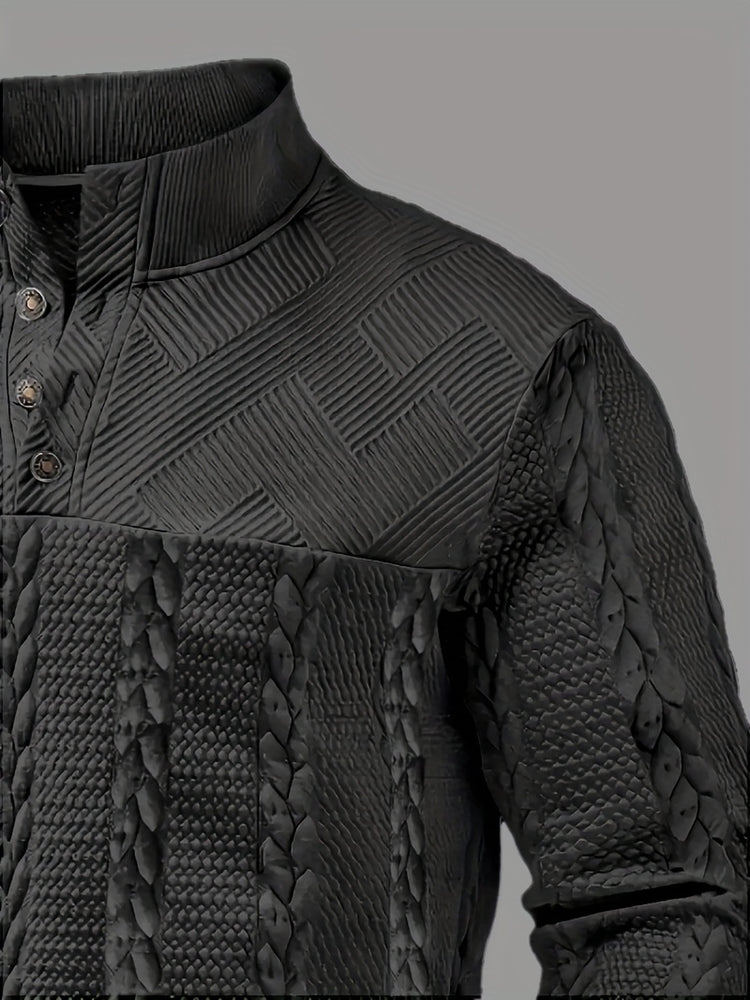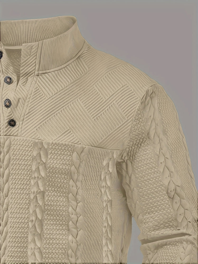 Men'S Jacquard Henley Shirt - Soft Stretch Long Sleeve Pullover with Button Front, Casual Knit Sweater for Fall/Winter, & Striped Design, Regular Fit Outdoor & Casual Attire, Winter Casual Wear | Striped Knitwear | Jacquard T