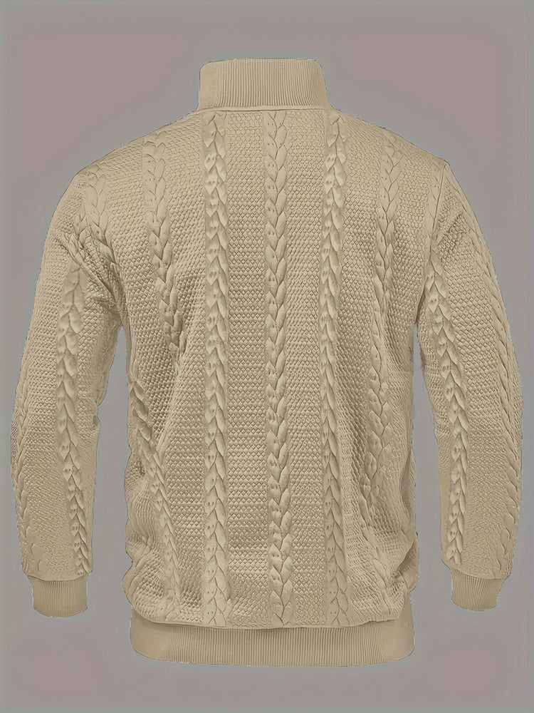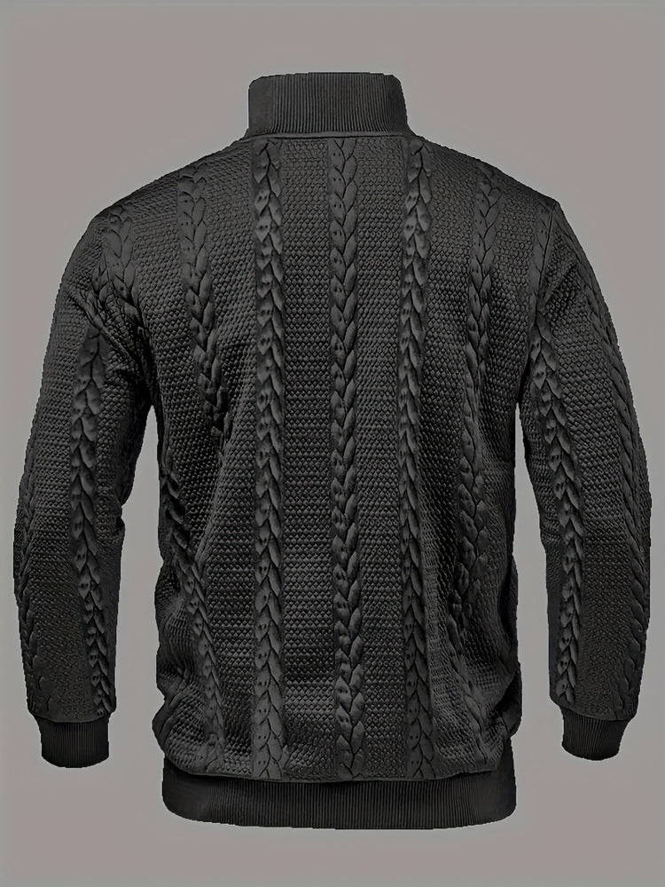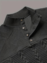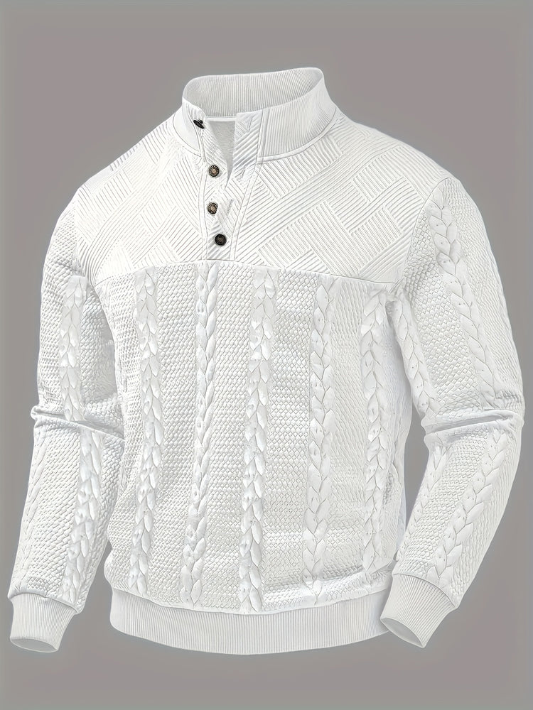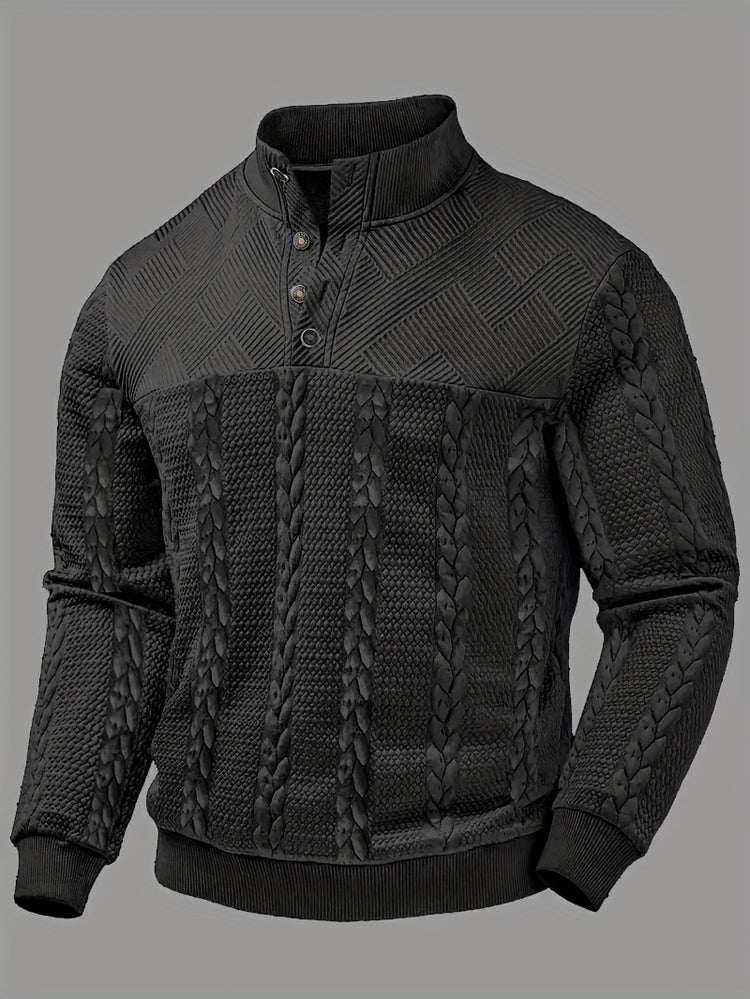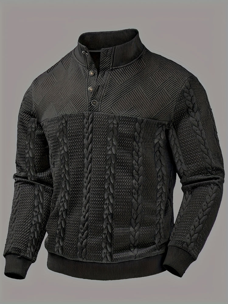 Men'S Jacquard Henley Shirt - Soft Stretch Long Sleeve Pullover with Button Front, Casual Knit Sweater for Fall/Winter, & Striped Design, Regular Fit Outdoor & Casual Attire, Winter Casual Wear | Striped Knitwear | Jacquard T