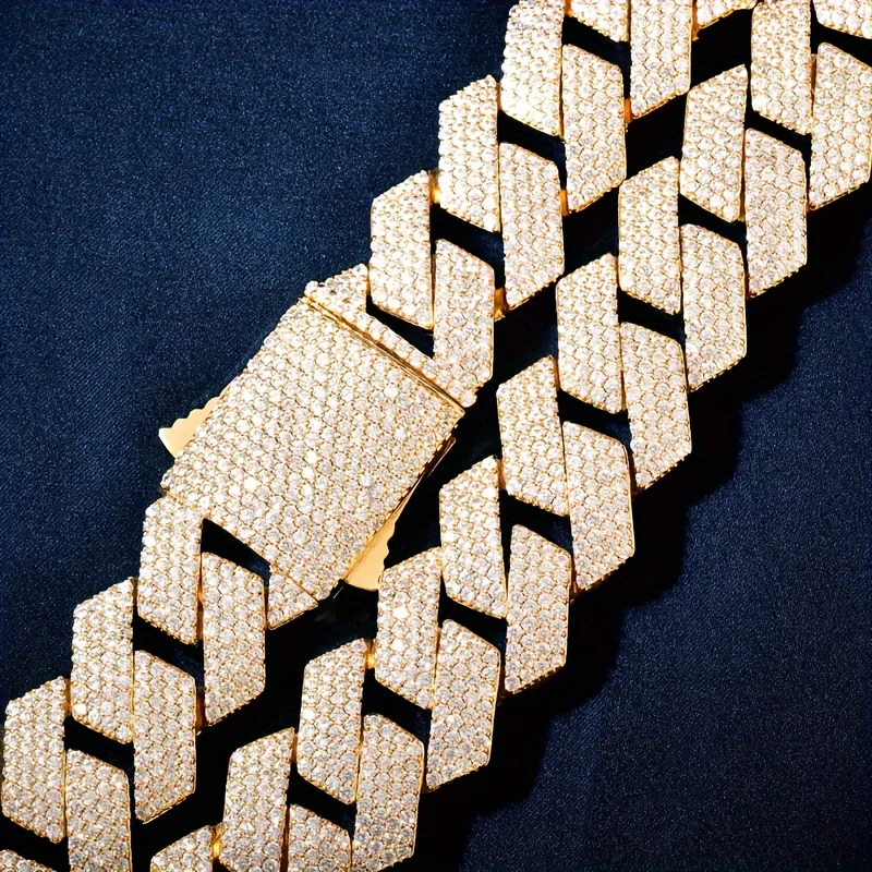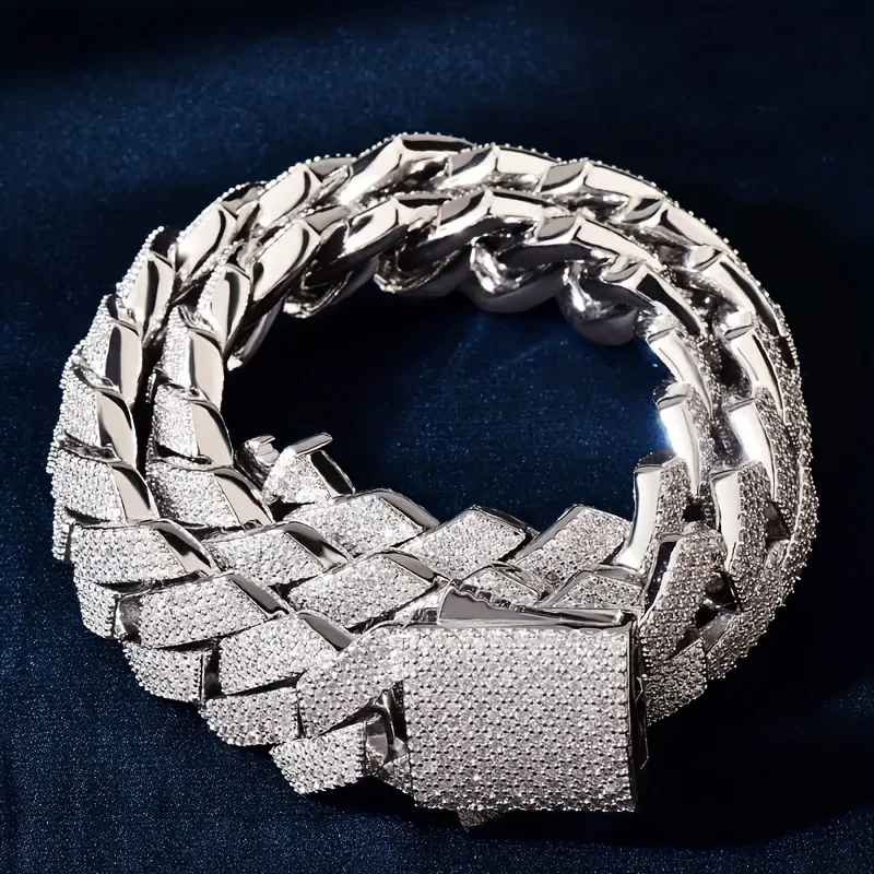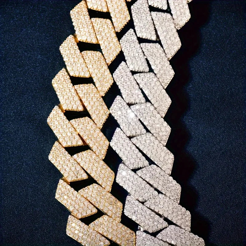 1pc Copper Inlaid with Zircon Cuban Necklace, a must-have for rappers, featuring trendy fashion, hip-hop style, street vibe, an