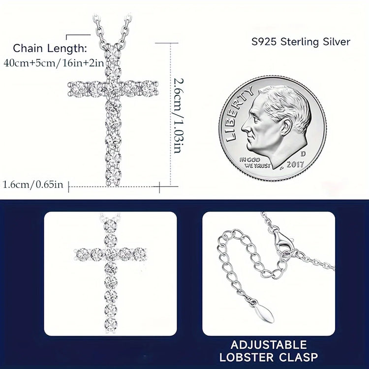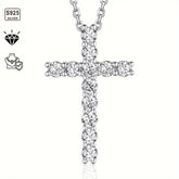 1pc S925 Silver with 2,4CT Moissanite Cross Co-ed Necklace, Gemstone Jewelry | Gifts for Mom | Gifts for Her | Birthday | Weddin