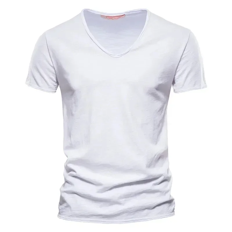 2024 hot summer men's new solid color V-neck pure cotton short sleeved T-shirt hot selling men's T-shirt top