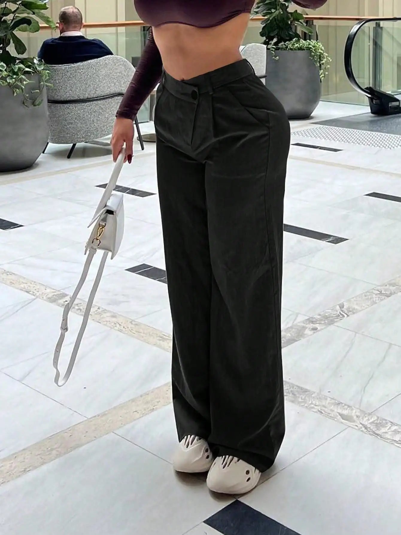 Straight Leg Pants For Women Casual Work Pants Crossover High Waisted Pants With PocketsNew Year Warm Thermal