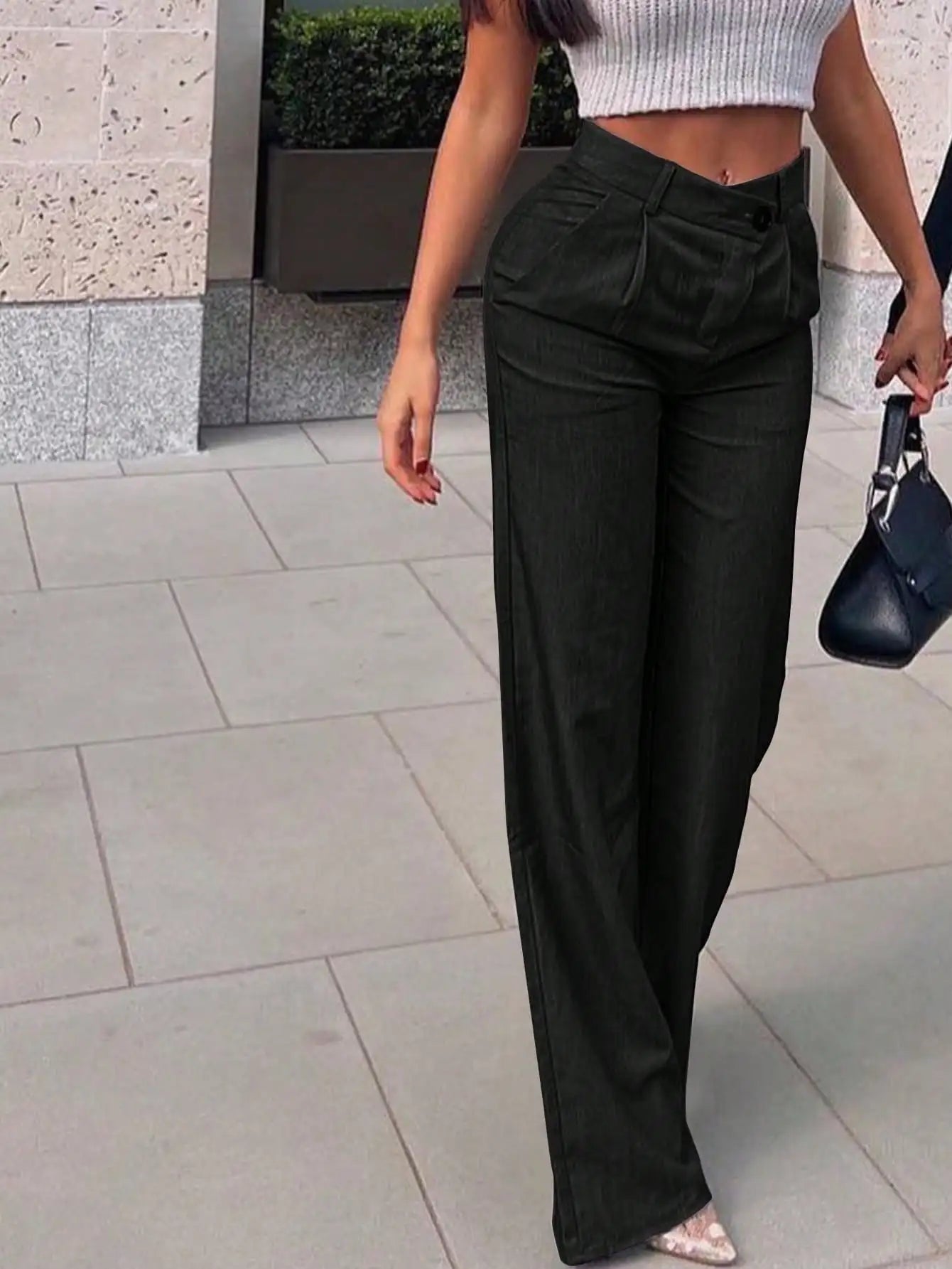 2025 Newest Women's Straight Leg Pants Casual Work Pants Cross High Waist Pants with Pockets New Year's Warmth