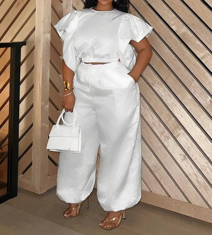 【2025 Summer New】Fashion Top & High Waist Straight Sweatpants Set for Women - Casual Tracksuit Two Piece Outfit | Solid Color/P