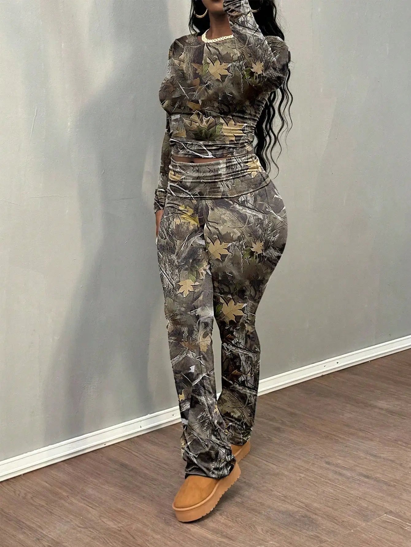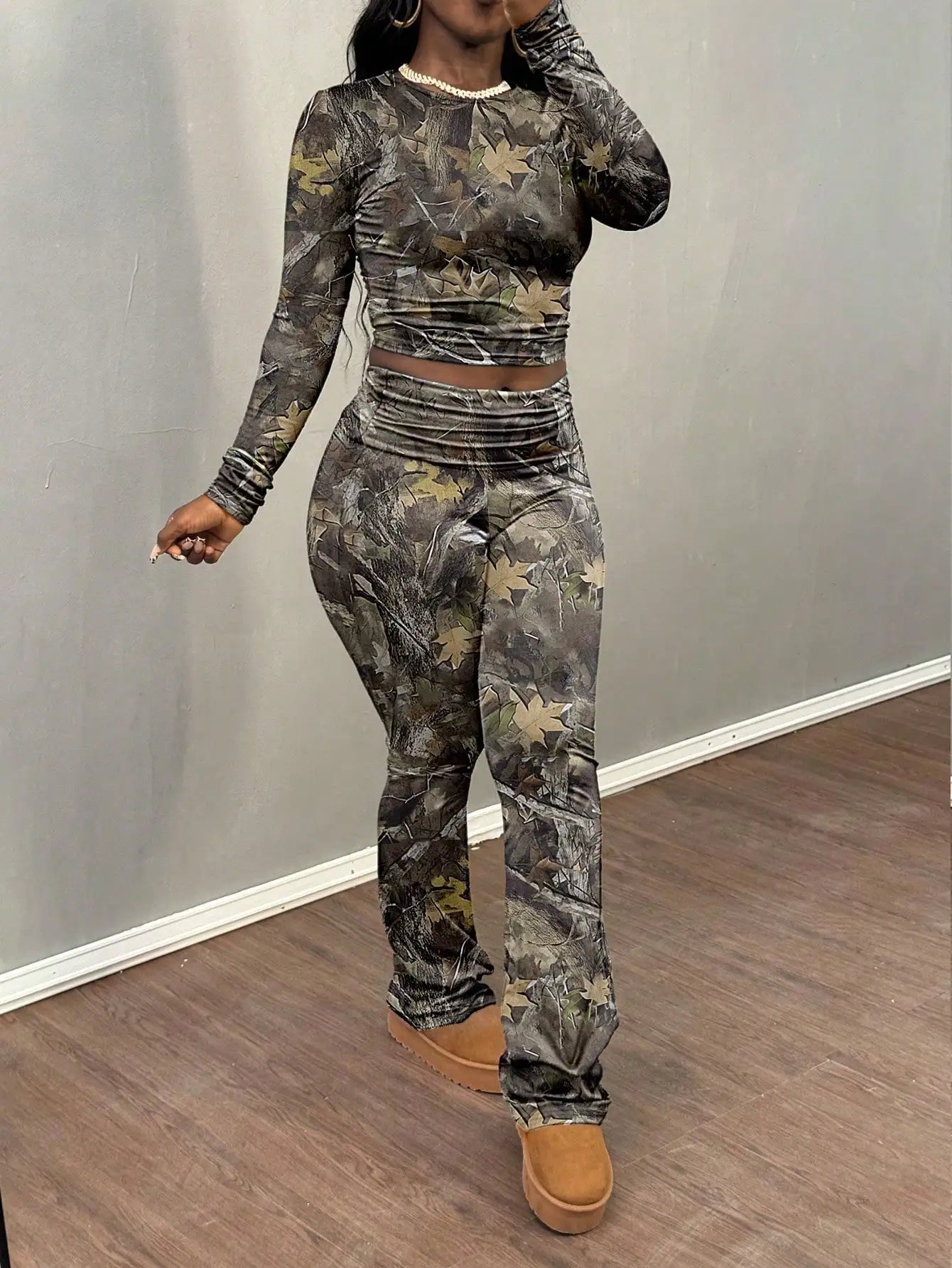 2025 Women's Sexy 2 Piece Outfit Long Sleeve Crop Top & Pants Set Clubwear Night Out Party Bodycon Matching Set