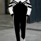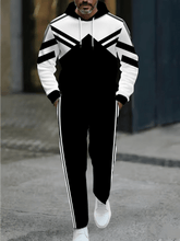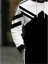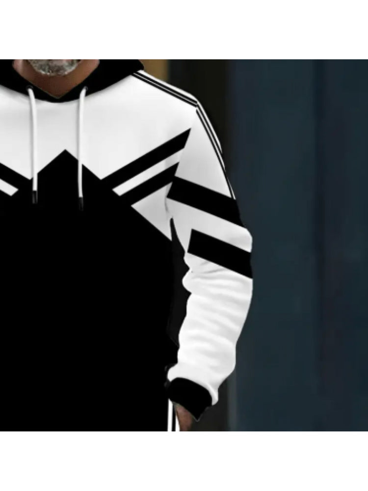 2pcs Men'S Plus-Size Hoodie & Pants Set - Black & White Geometric Pattern, Regular Fit Casual Sportswear for Outdoor Activities, Spring & Autumn, Back-to-School Essentials, Comfortable Clothing | Sporty Look | Durable Fabric,