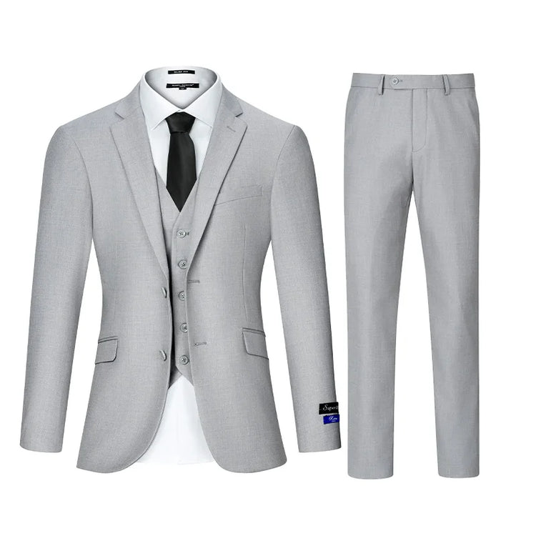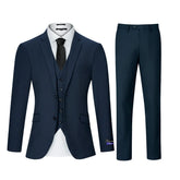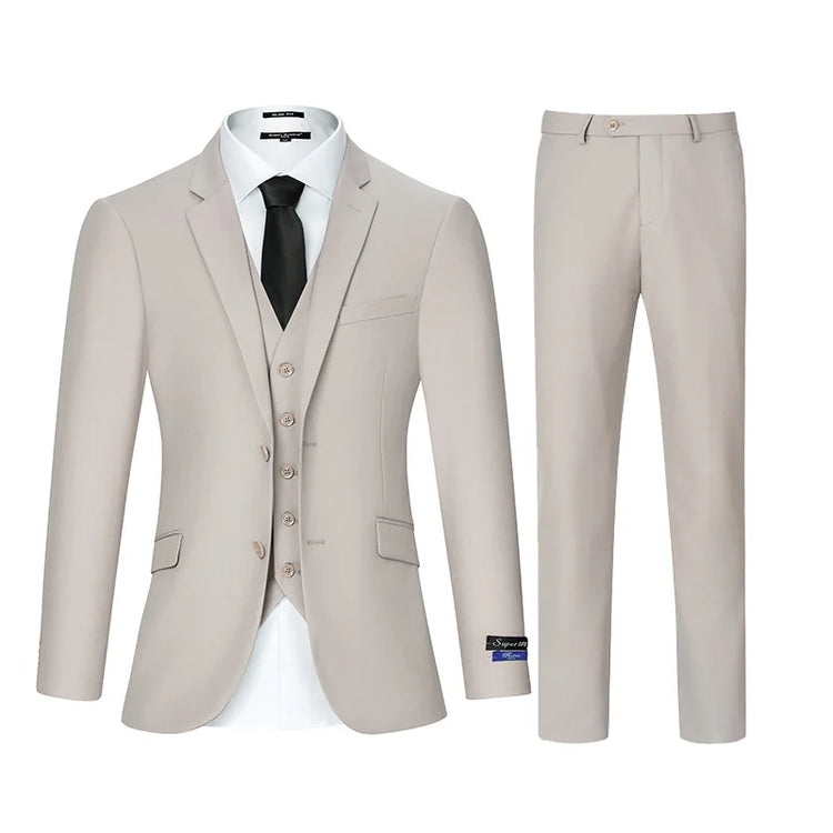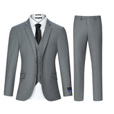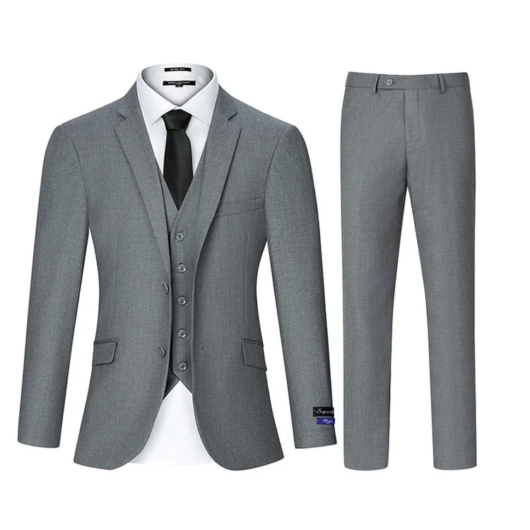 3pcs Men's Classic Solid Color Suit Set Long Sleeve Blazer with Button Details Non-Stretch Fabric Regular Fit for All Seasons