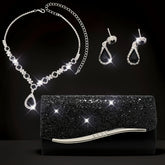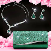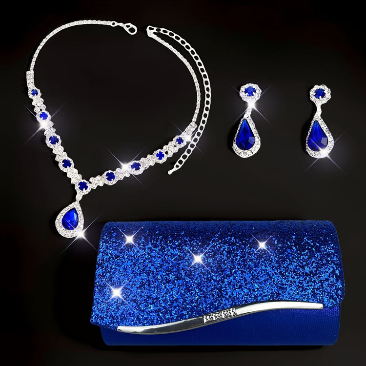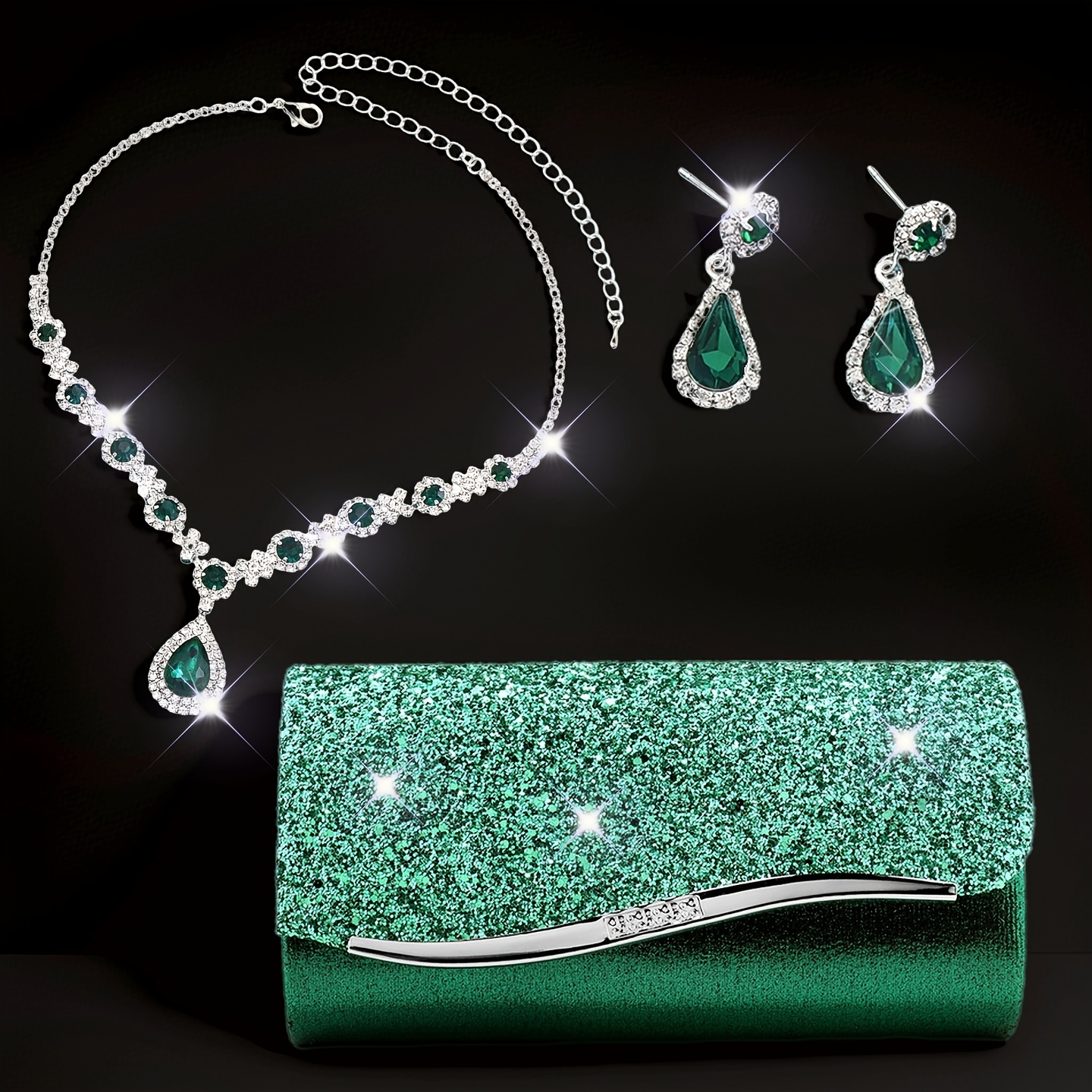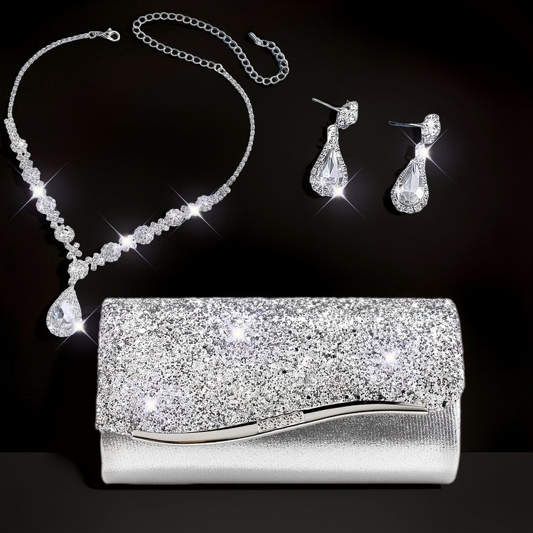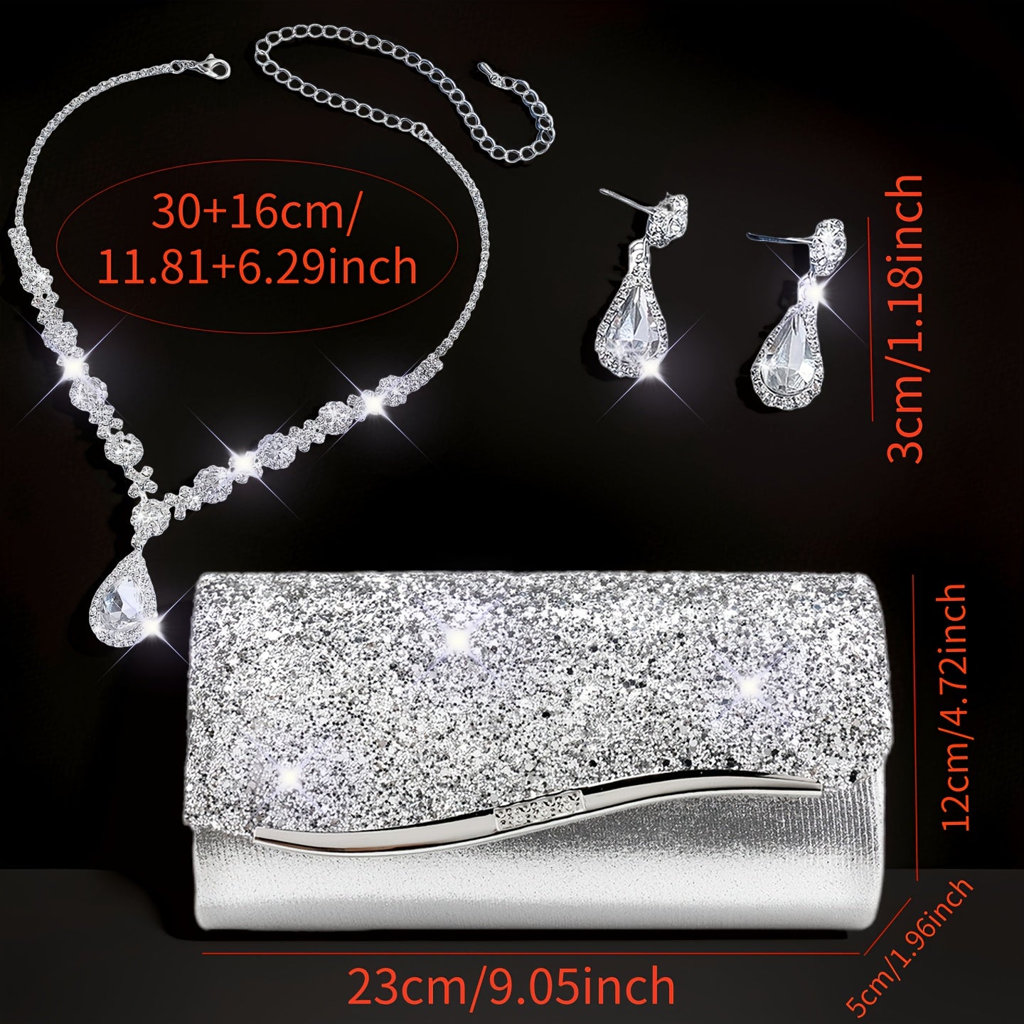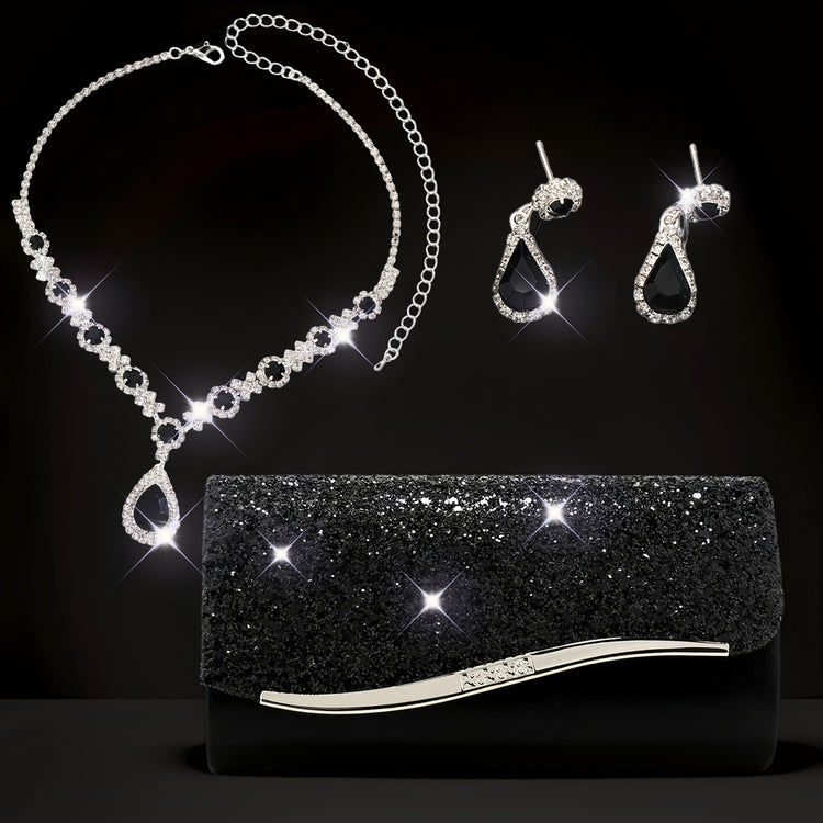 3pcs Women'S Evening Clutch with Necklace and Earrings | Rhinestone Envelope Party Handbag Set for Bridal Ball, Solid Color