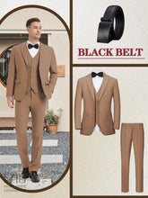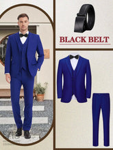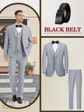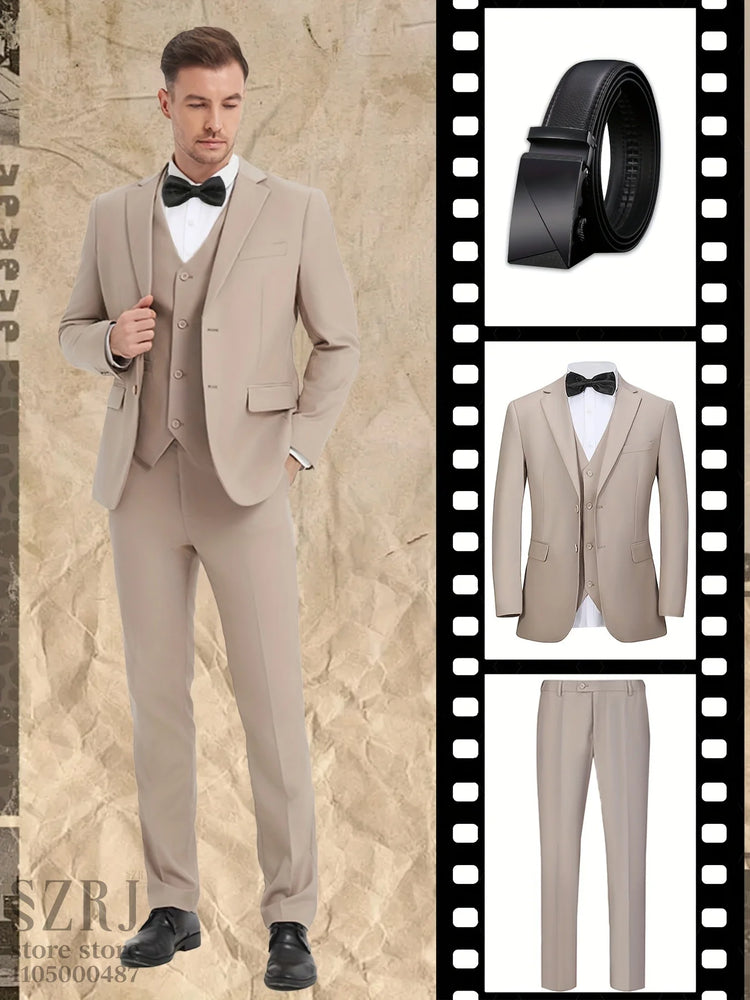 4pcs Men's Formal Suit Set: Tuxedo, Vest, Pants, Belt with .Classic Elegant Attire for Business, Party, Banquet, Job Interview