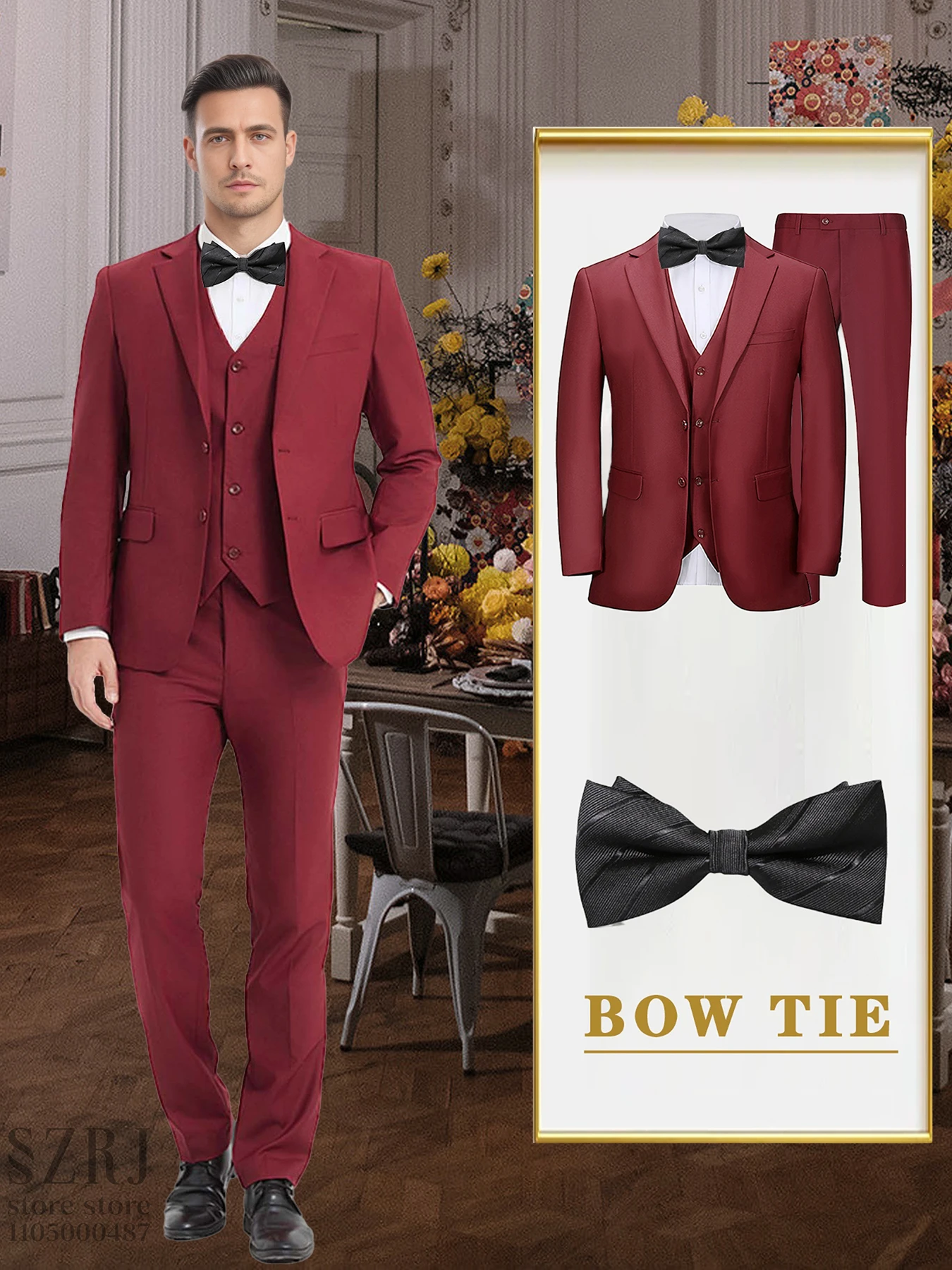 4PCS Men's Formal Tuxedo Set: Vest + Pants + Socks | Classic Solid Suit for Business/Party/Interview