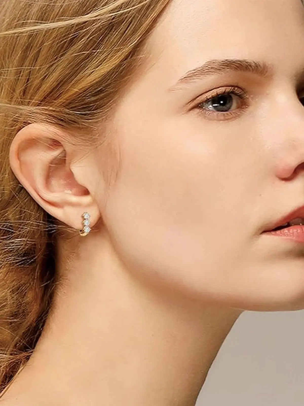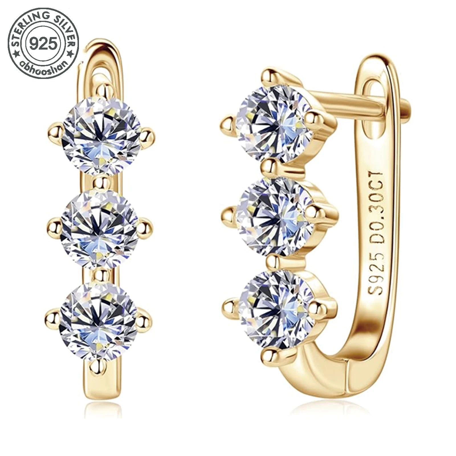 925 Silver, Triple Diamond Moissanite Earrings, Women's Earrings with 3mm Moissanite*3, Designed for both men and women, Sparkli