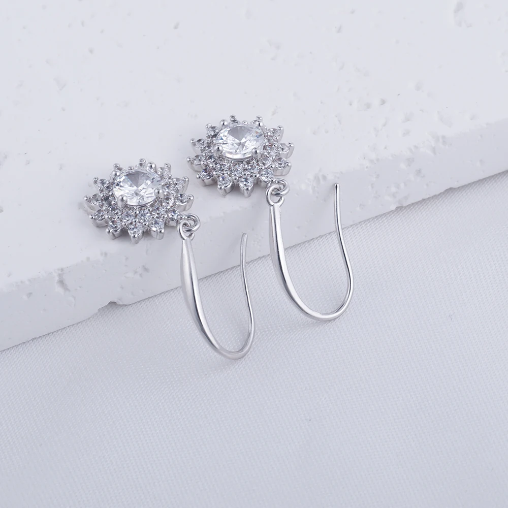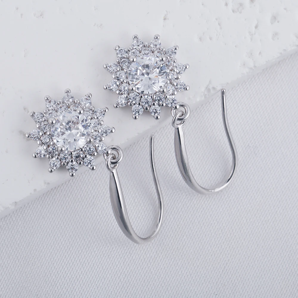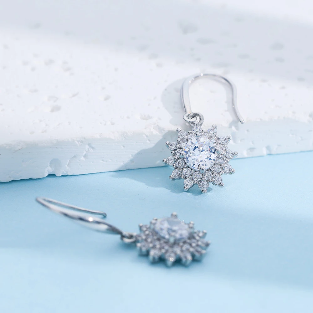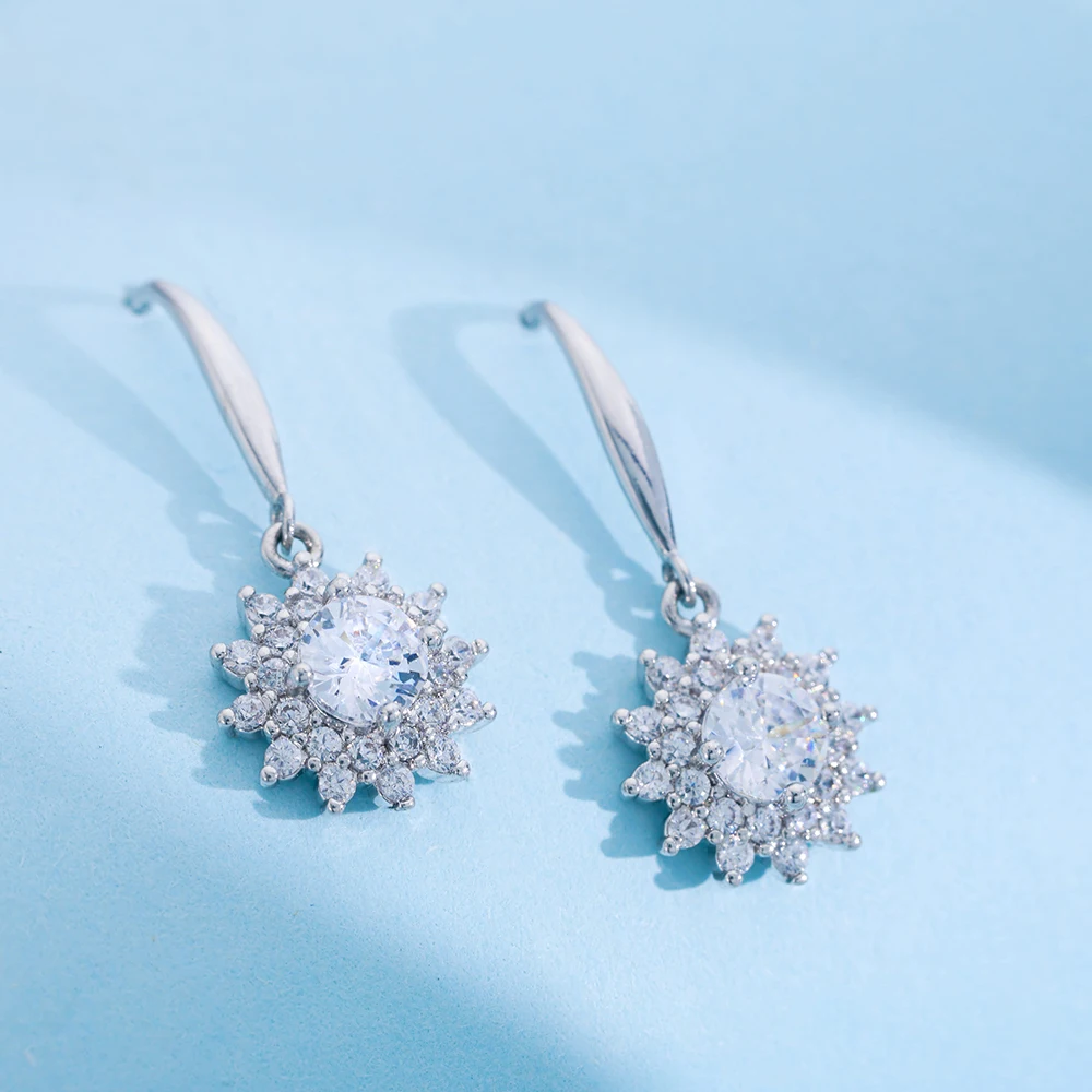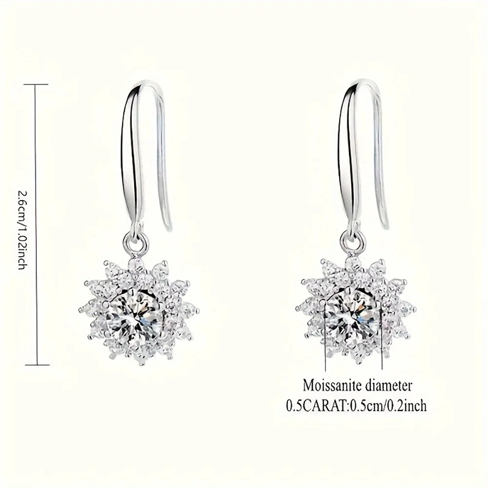 925 Sterling Silver 0.5 carat * 2 Moissanite Sunflower Earrings Sunny Fashion Elegant Female Mother's Day Gift for Mom USA Stock