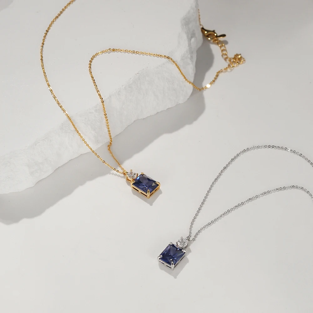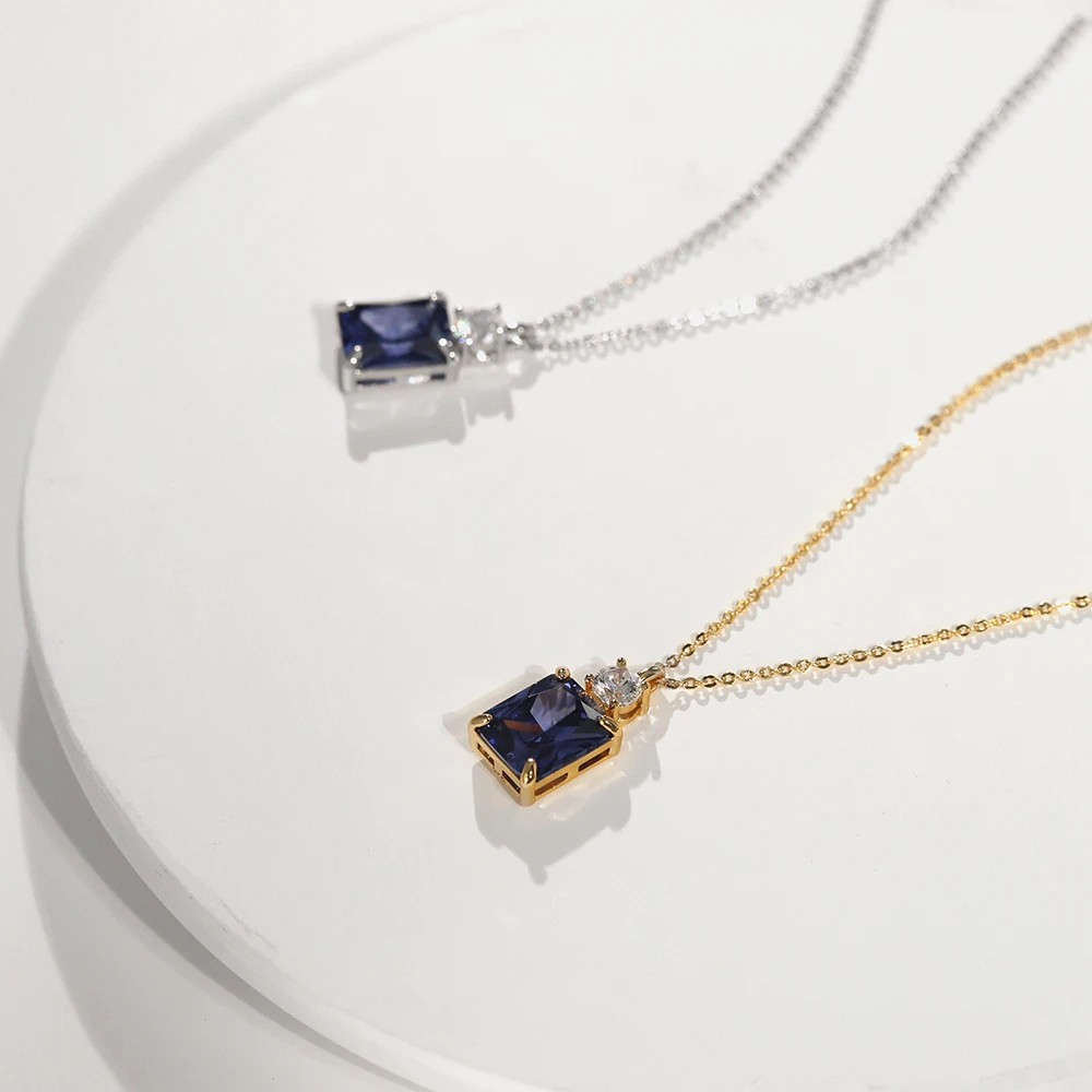 925 Sterling Silver Blue Zircon Pendant Choker Necklaces for Women Luxury Elegant fine Jewelry Accessories Wholesale USA Stock
