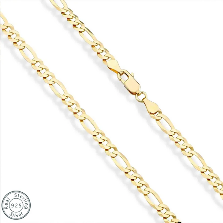 925 Sterling Silver Classic Figaro Chain Link Necklace for Men 14K Gold Plated 5mm Wide Cuban Curb Link Chain Jewlelry Gift USA