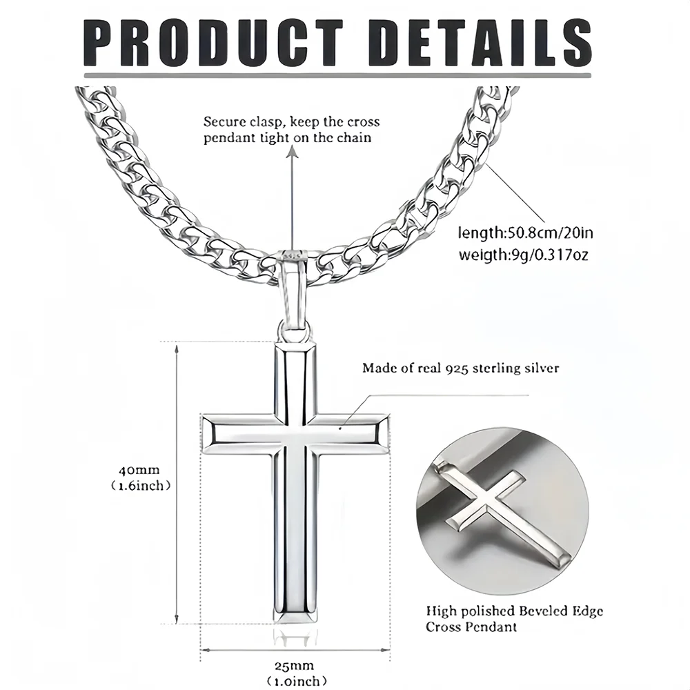 925 Sterling Silver Cross Necklace for Men Women Durable Cuban Crucifix Pendant Necklace Religious Jewelry Gift Ships from USA