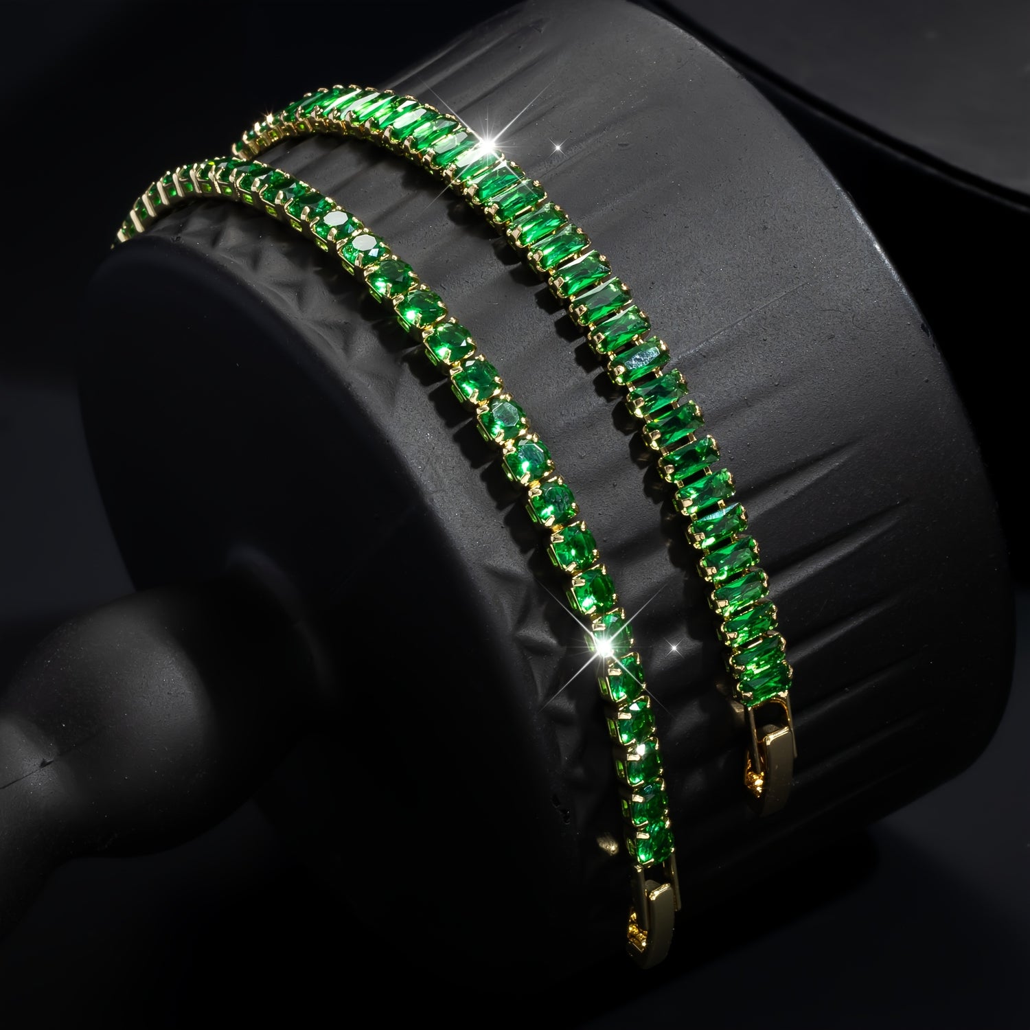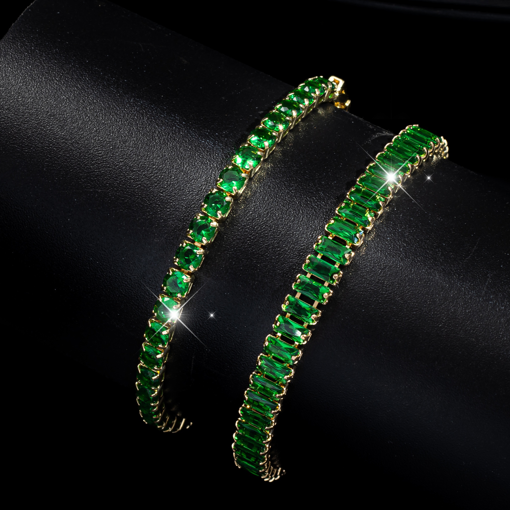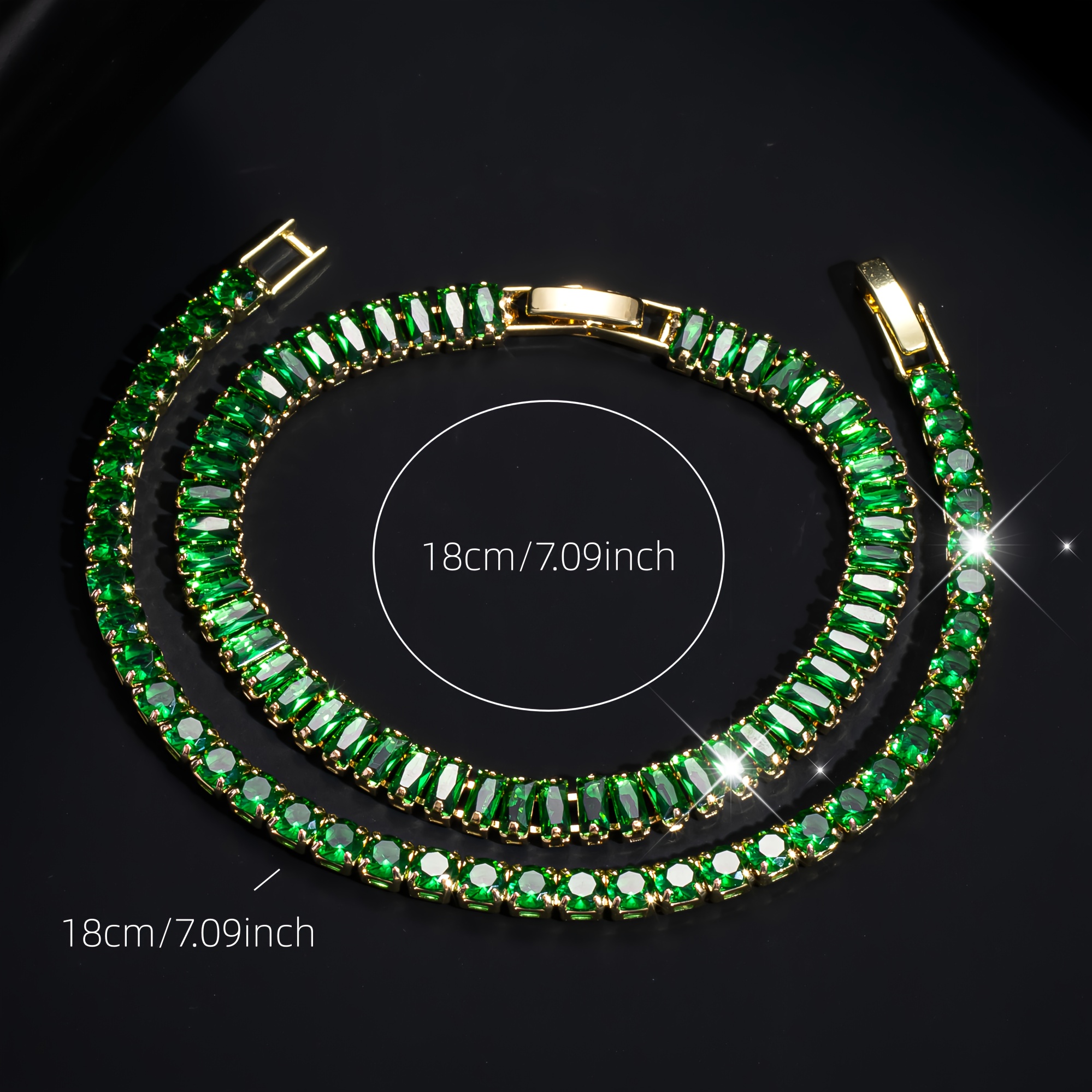 A Set of Two Bracelets for Men And Women, Featuring an Elegant And Luxurious Style with Green Round And Square Copper Inlaid Sparkling Synthetic Synthetic Synthetic Zircon, Suitable for Everyday Wear Or Holiday Gifts