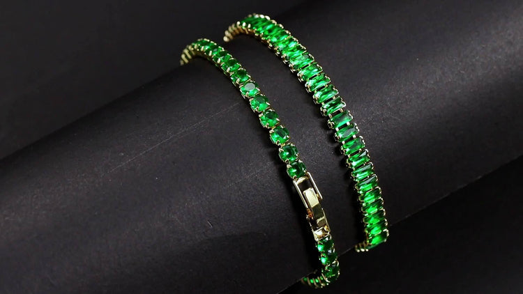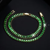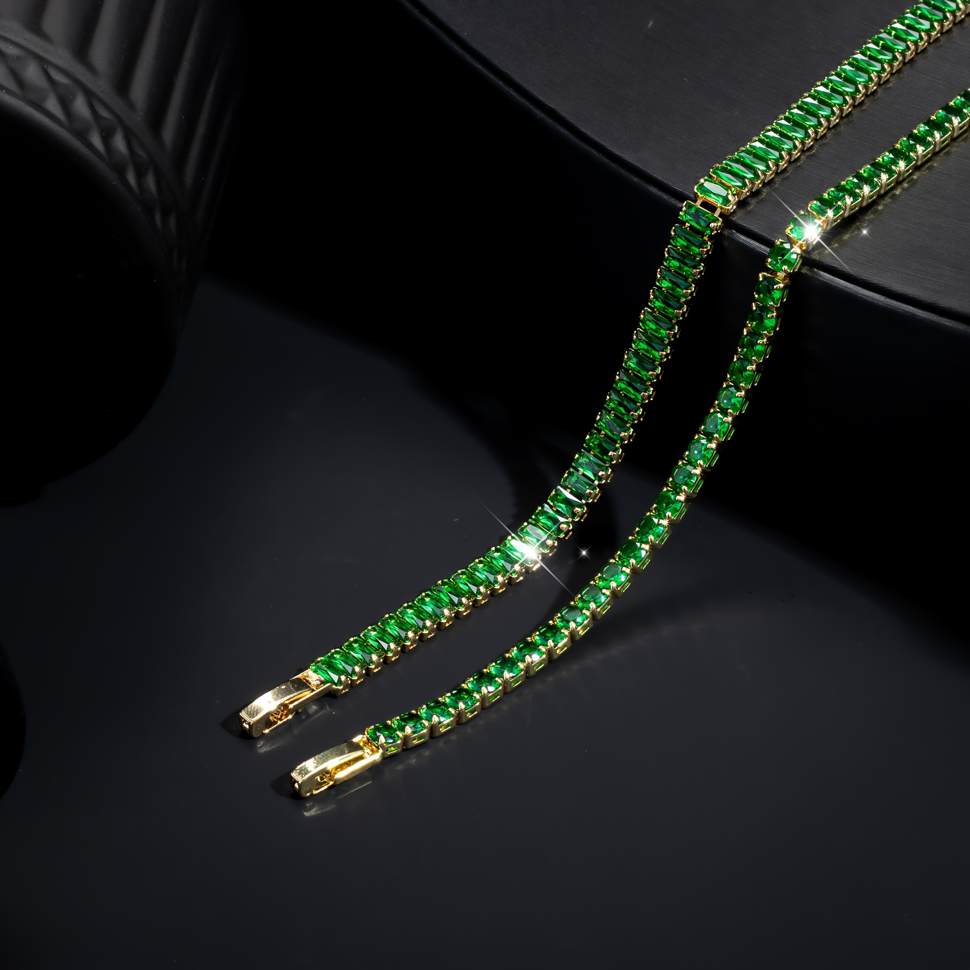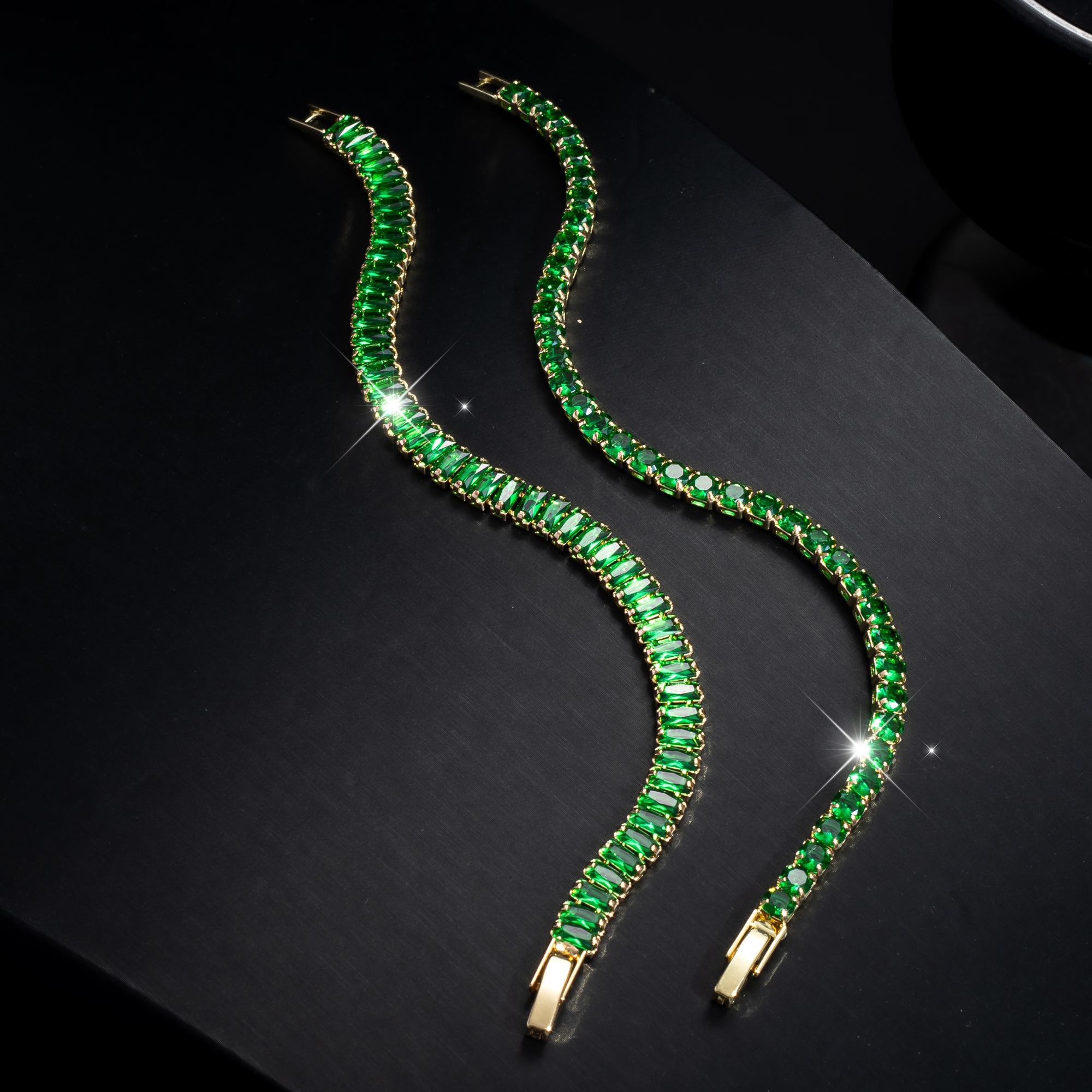A Set of Two Bracelets for Men And Women, Featuring an Elegant And Luxurious Style with Green Round And Square Copper Inlaid Sparkling Synthetic Synthetic Synthetic Zircon, Suitable for Everyday Wear Or Holiday Gifts