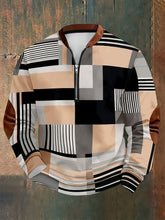 [All-Season Comfort Apparel] Geometric Color Block | Men's Casual Polo Shirt - V-Neck, Zip-Up, Loose Fit