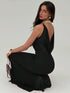 Aloruh Valentine's Day Burgundy Romantic Date Party Spaghetti Strap Bodycon Backless Draped Neck Maxi Mesh Dress