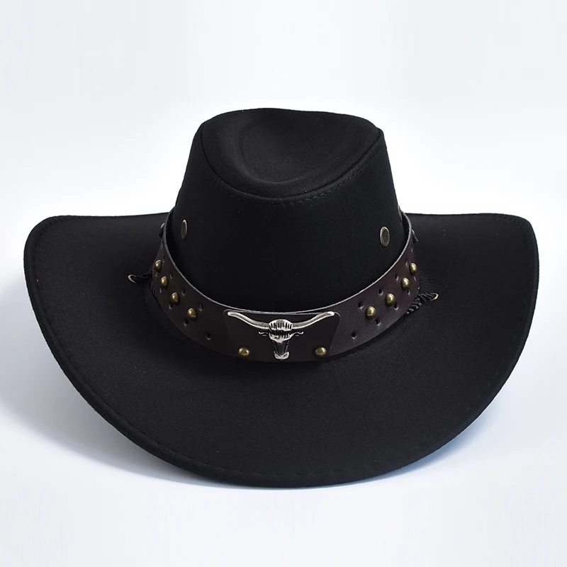 Artificial Suede Western Cowboy Hats Vintage Big-edge Gentleman Cowgirl Jazz Hat Holidays Party Cosplay Hat