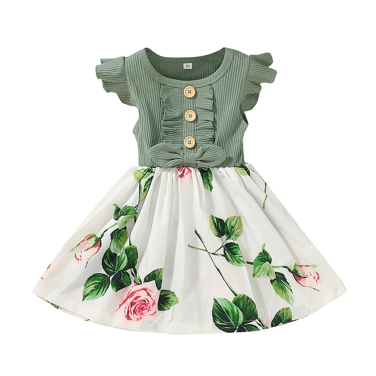 Toddler Infant Dress Floral Ruffle Sleeve Dresses Girls Sundress
