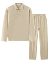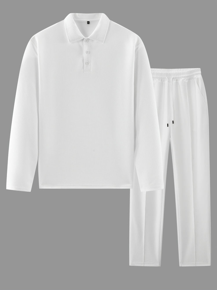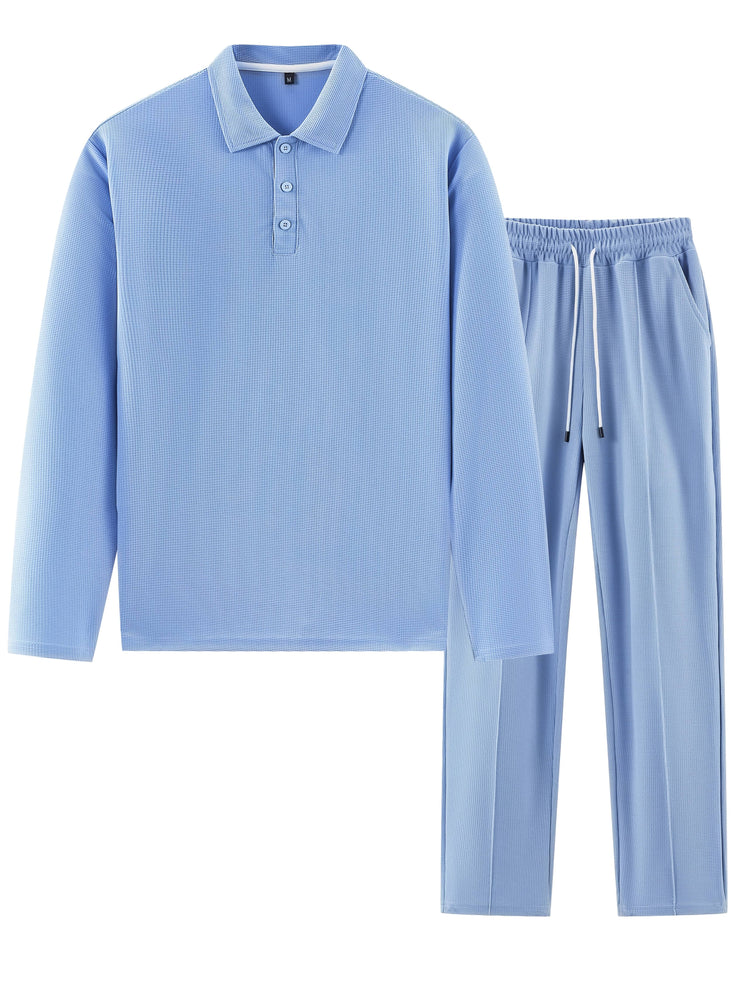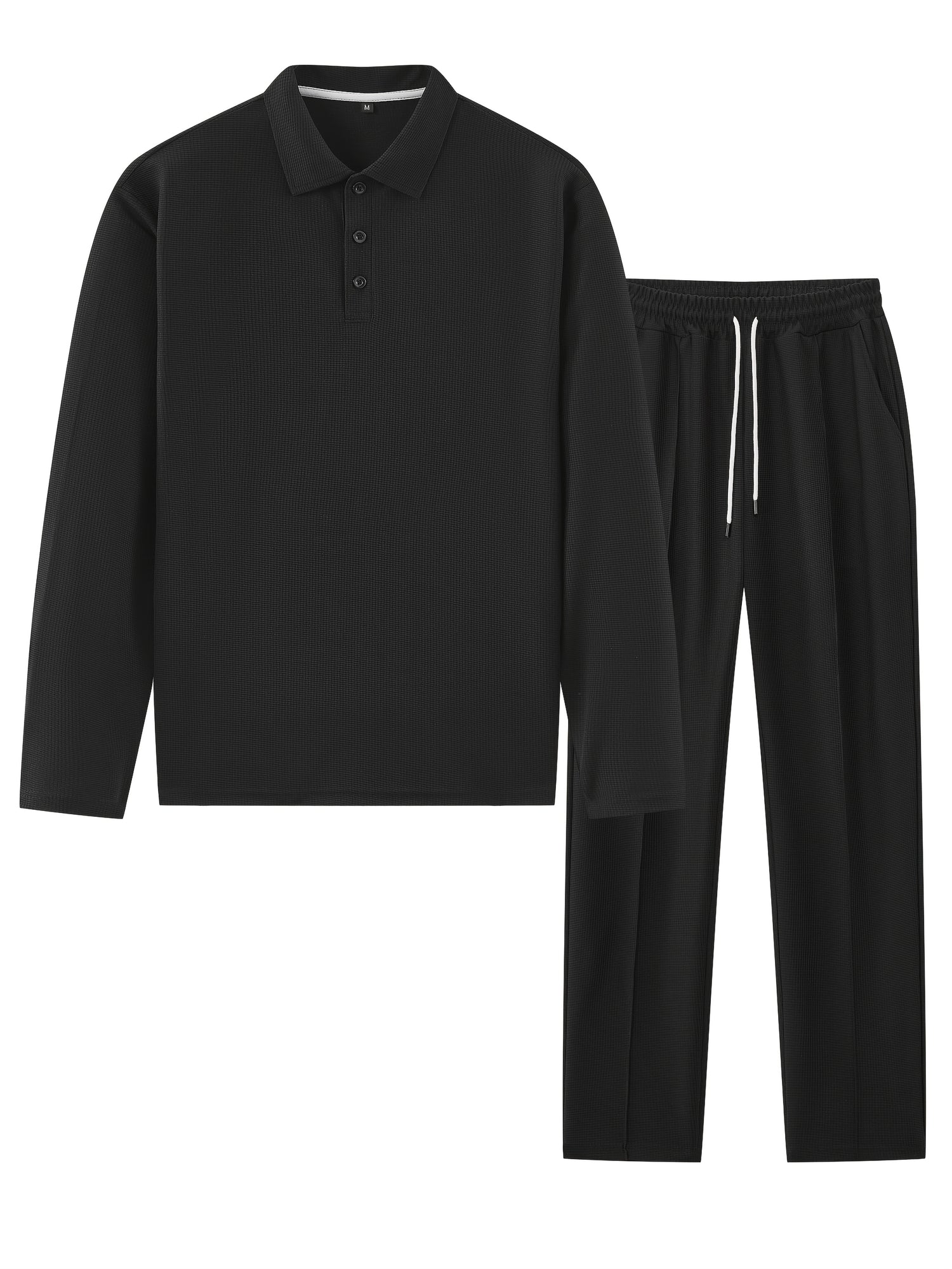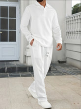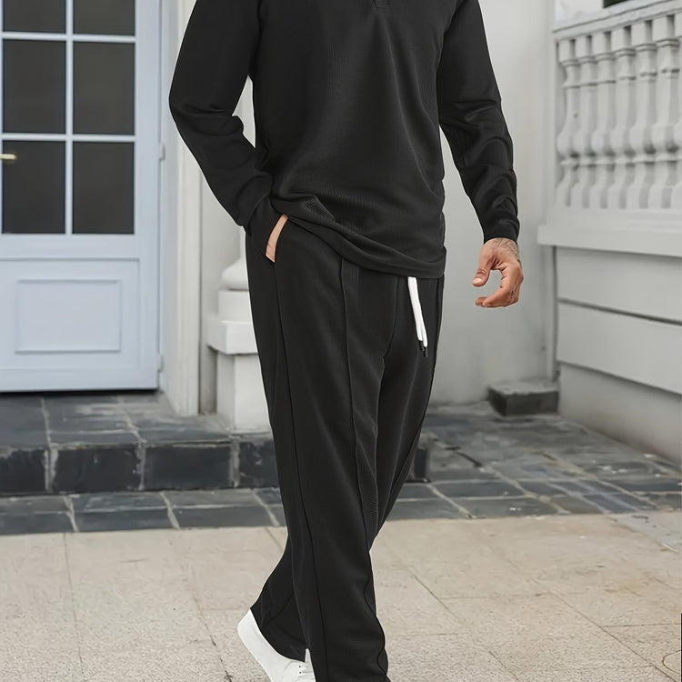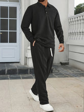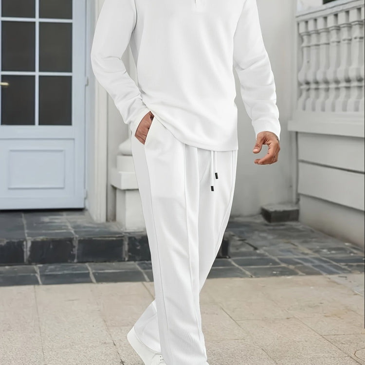 [Comfortable Men's Set] 2pcs Men's Long-Sleeve Shirt and Drawstring Pants Set - Clean, Comfortable, Breathable