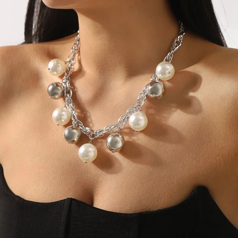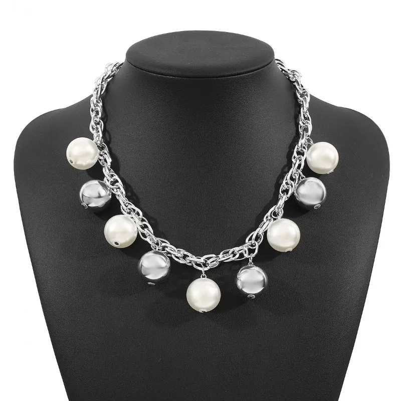 Cross-border Coarse Chain Pearl Pendant Necklace Personality Fashion Temperament Light Luxury Premium Cuban Clavicle Chain