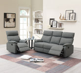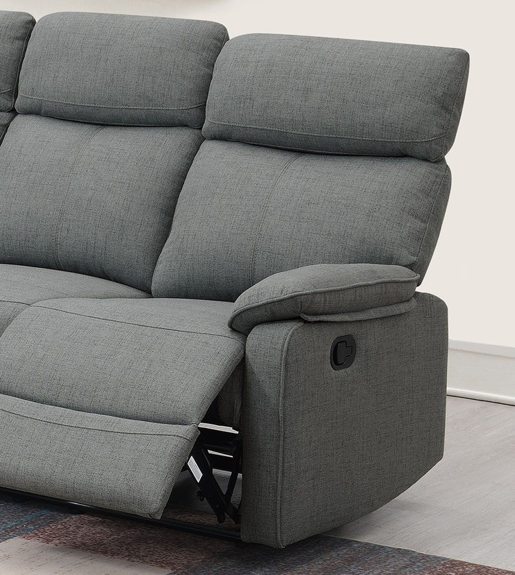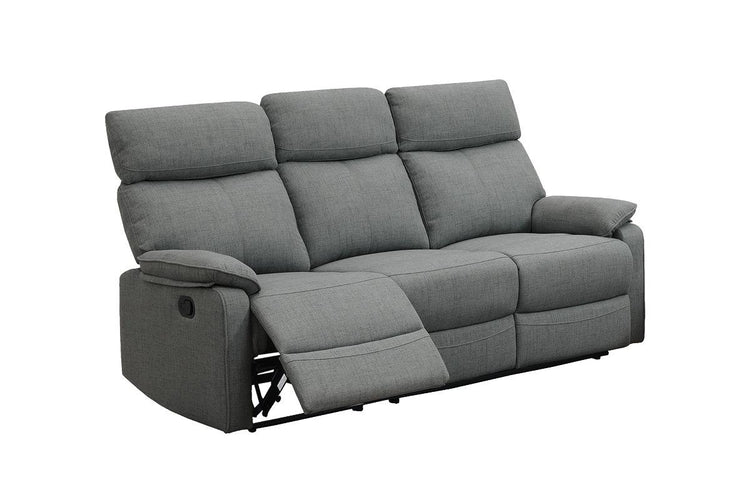 Relax with the family and enjoy a movie night with this 3-seater manual recliner Sofa Set. Designed to provide maximum comfort and support, featuring patted headrests and armrests. Available in Dark Blue and Gray (Burlap Fabric)Product Dimensions:-
