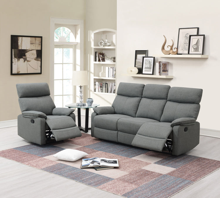 Gray Color Burlap Fabric Recliner Motion Sofa 1pc Couch Manual Motion Sofa Living Room Furniture