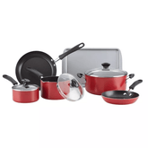Cookstart 15pc Aluminum Nonstick Cookware Set with Prestige Tools Red