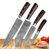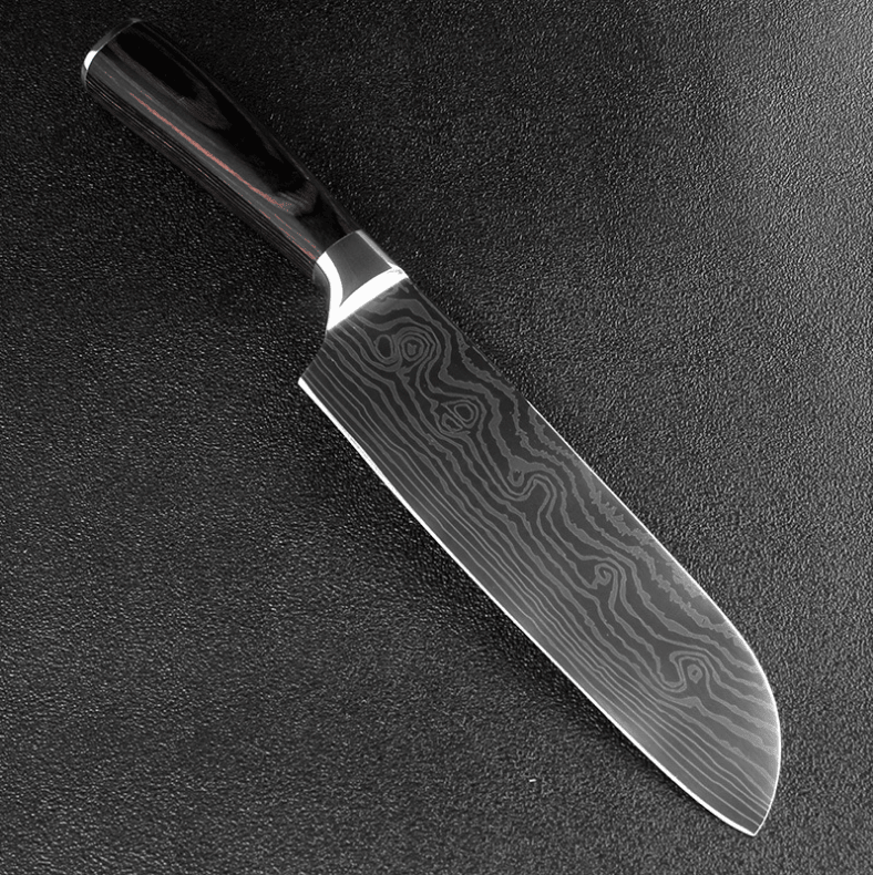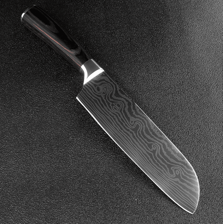 Tips: The blade is 7CR17 stainless steel; the surface of the laser Damascus pattern; very beautiful; good workmanship; razor-sharp; keep your kitchen away from the blunt knife; and enjoy your kitchen life!