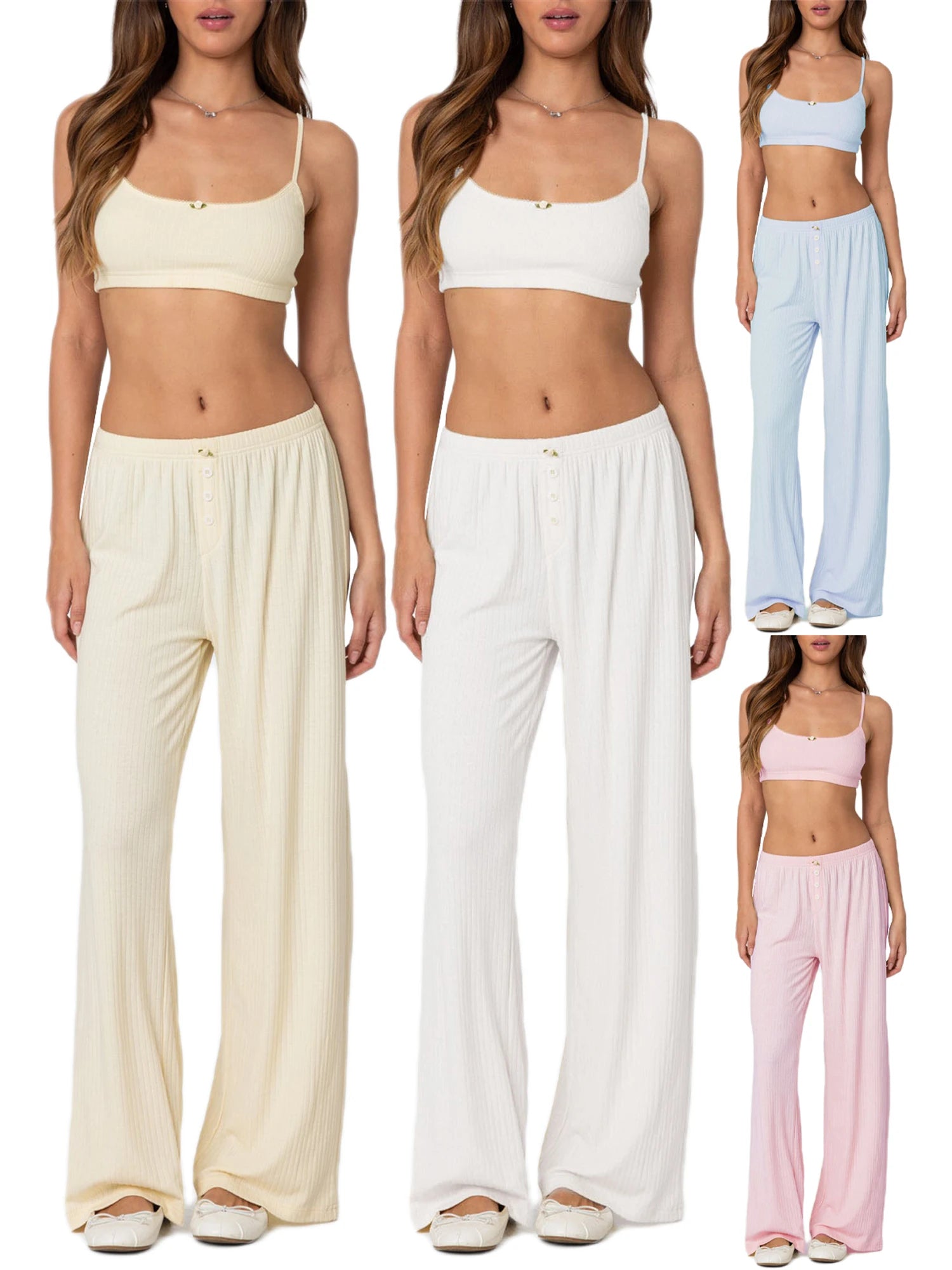 Say goodbye to the hassle of mixing and matching your outfit every morning with our women's pants set. This set includes a stylish pair of pants and a matching camisole, making it the perfect choice for many occasions.