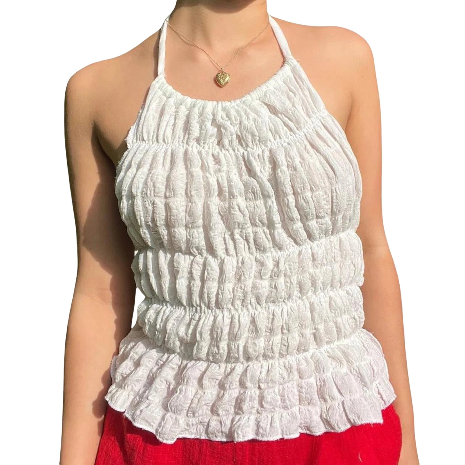 Women's Halter Neck Vest Summer Sleeveless Open Back Trendy Bubble Tank Tops