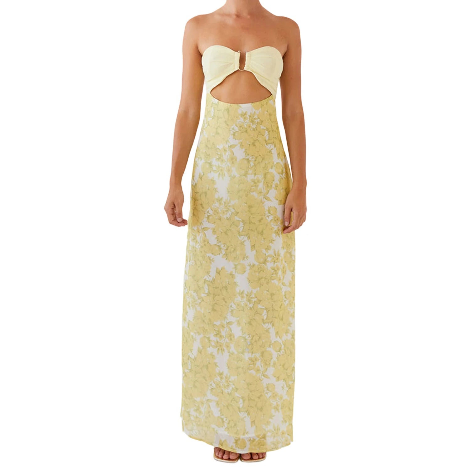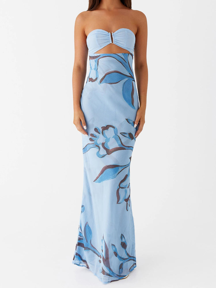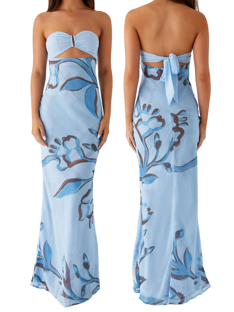 Elegant Maxi Dress with Off-Shoulder Design and Floral Print Stylish Backless Strapless Tube Dress for Summer Beach Party with