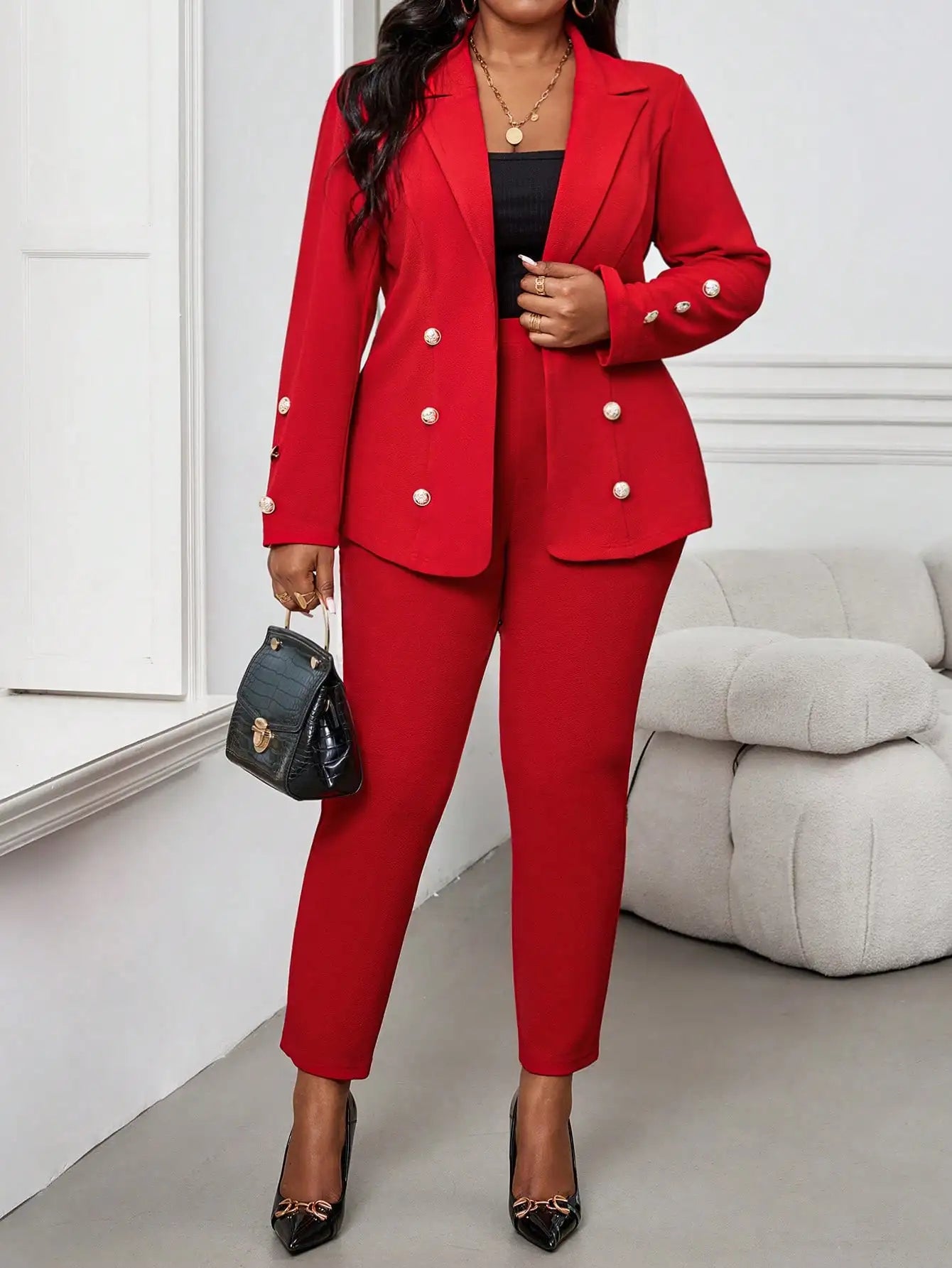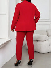 Elegant Red Women's Suit Set with Double Breasted Blazer & Trousers, Plus Size Office Wear