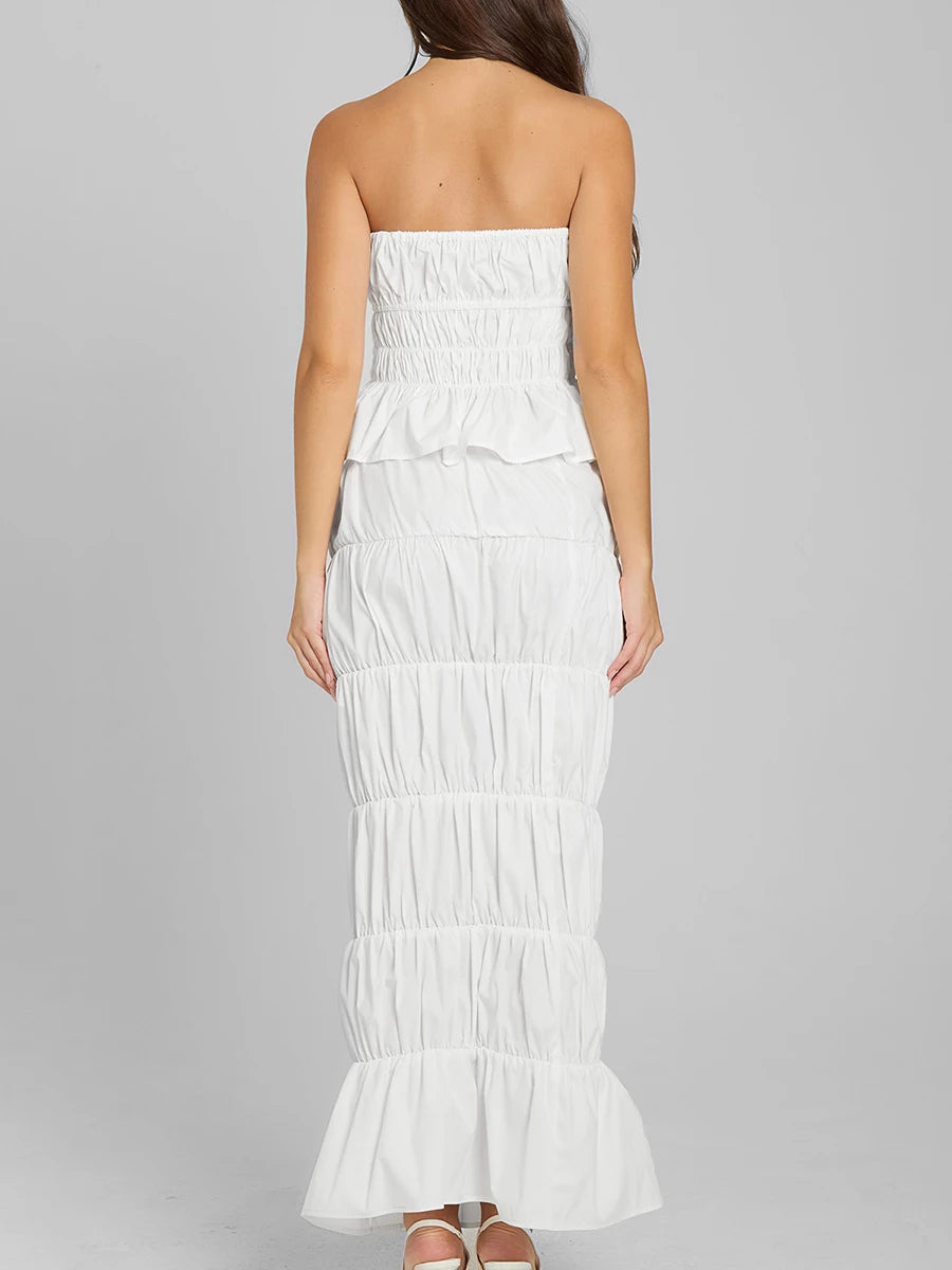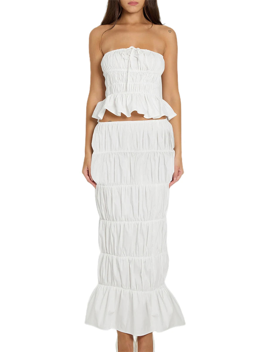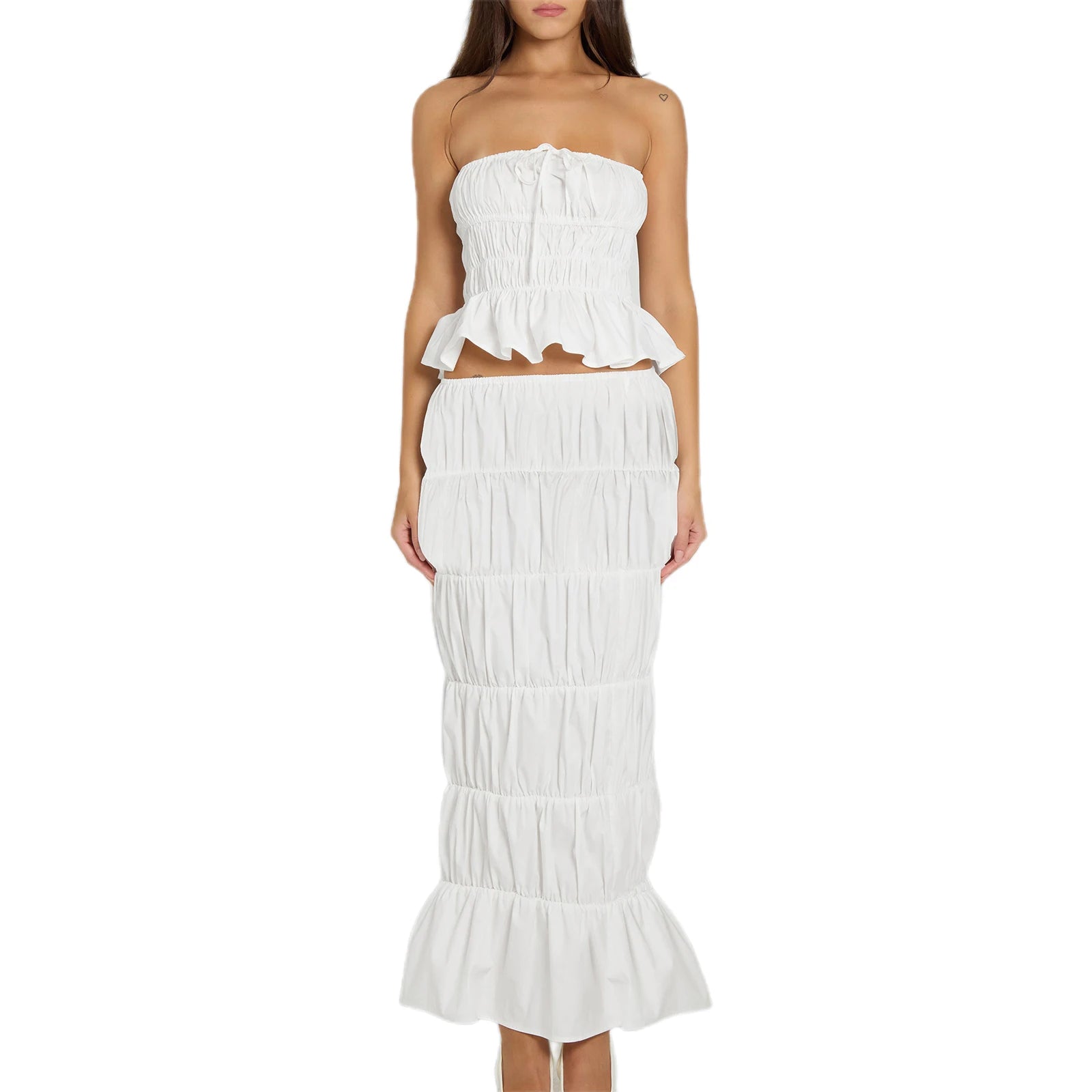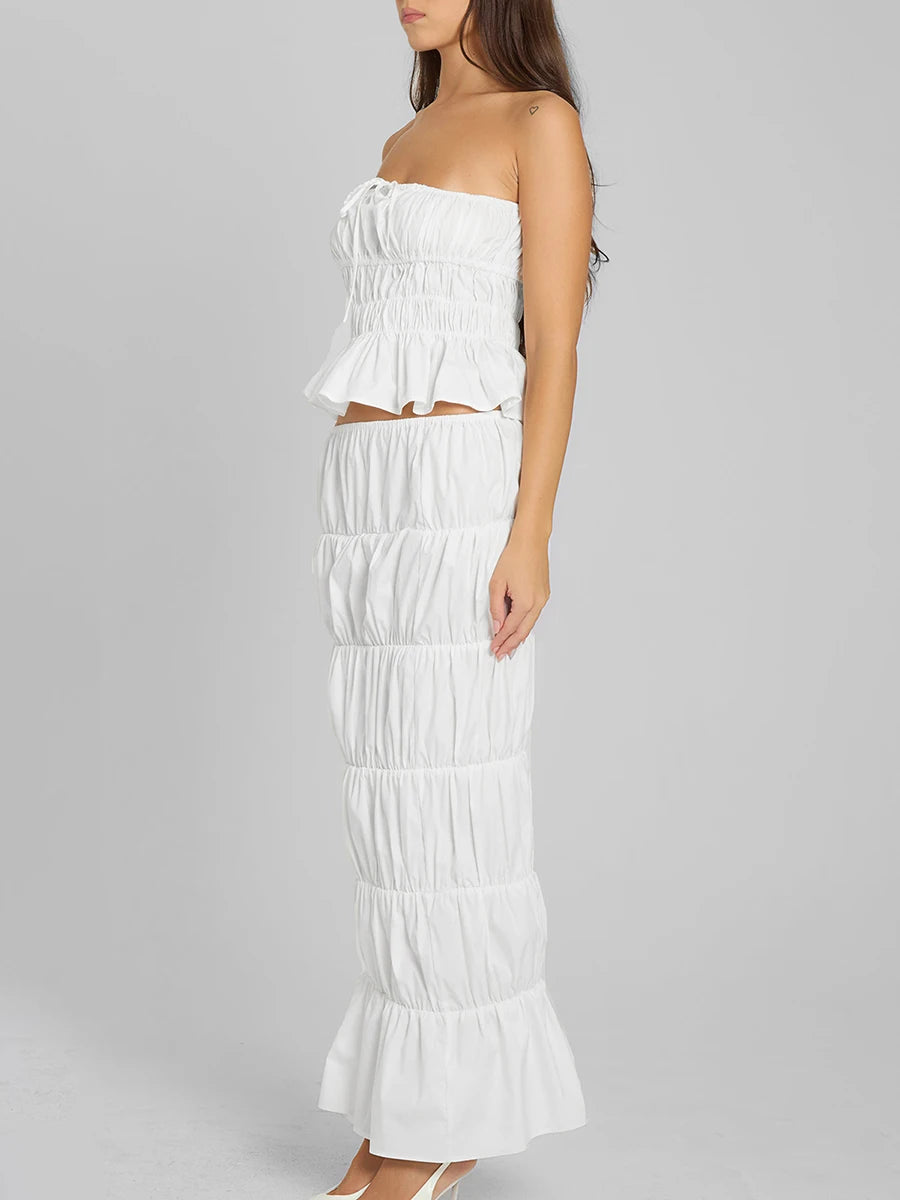 Women Skirt Set, Pleated Sleeveless Backless Tube Top with Long Skirt Summer Outfit
