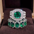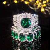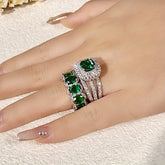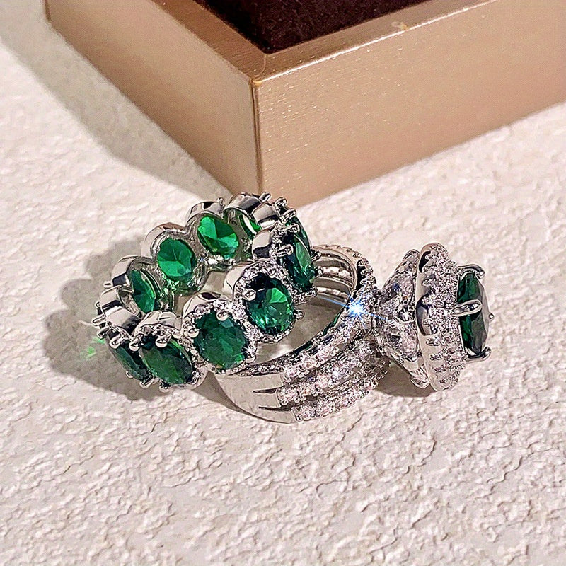 Fashion Silvery Color Green Stone Ring Set Wedding Band Valentine's Day Jewelry