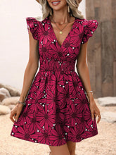 Fashion V-Neck Printed Dress Women's Petal Sleeve Mini Dresses Summer Party A-Line Dress Vestidos